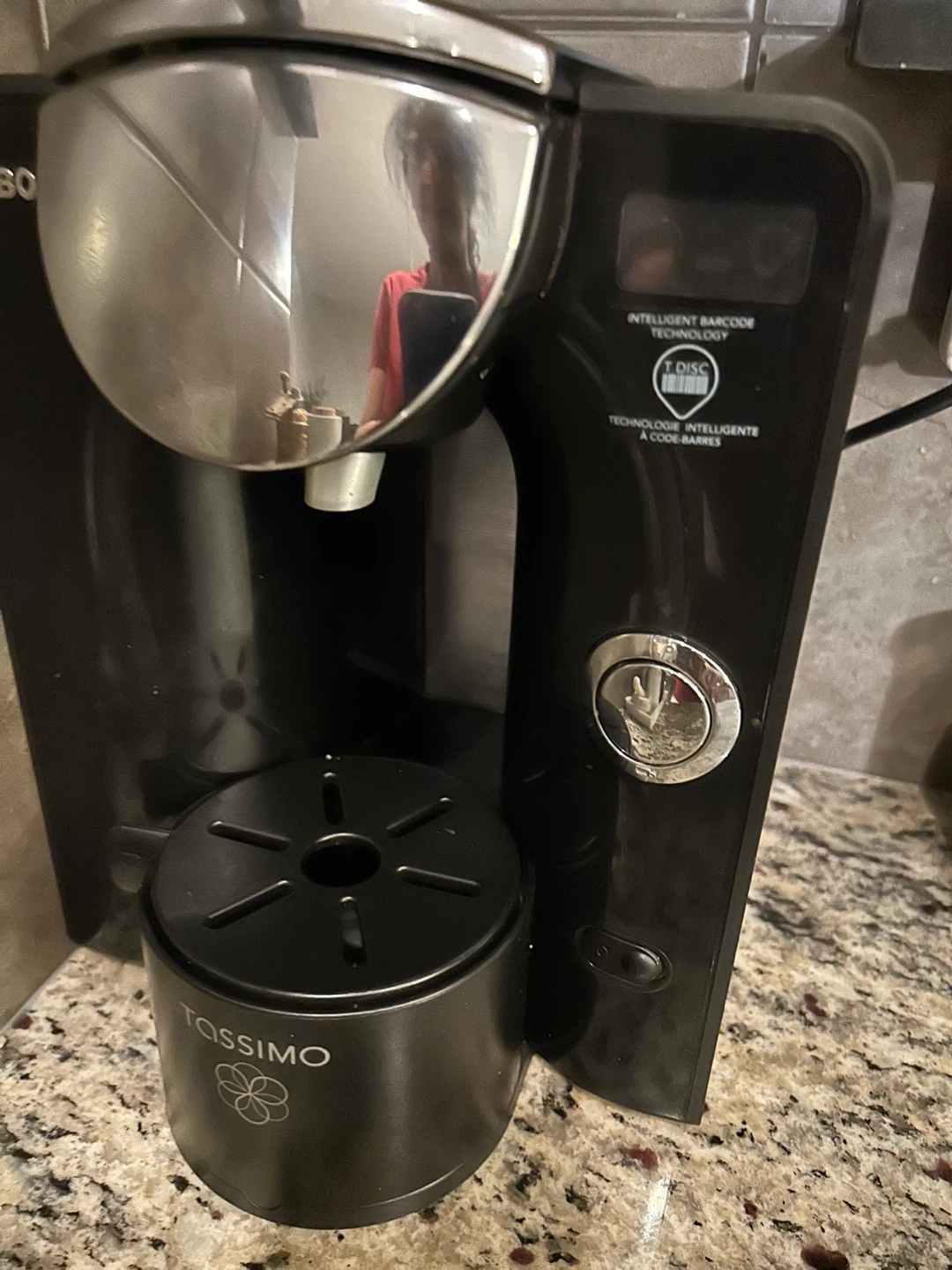 This is a black Bosch TASSIMO coffee machine with intelligent barcode technology. It features a removable drip tray for cup height adjustment. Suitable for making single-serve beverages.