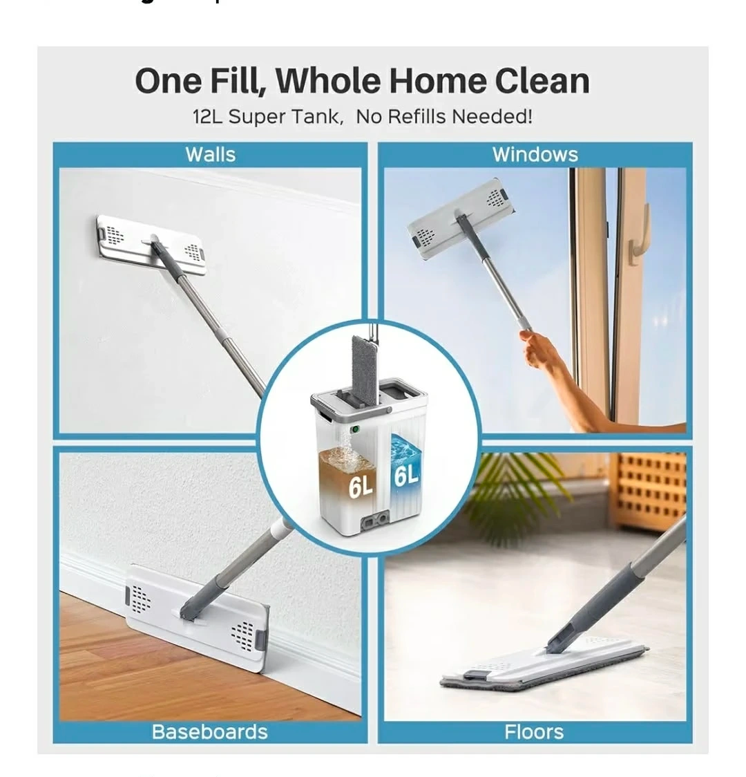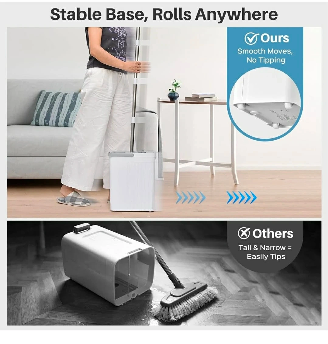 Get your floors sparkling clean with this self-wringing mop bucket cleaning system! It features a long-lasting 2000mAh battery and can handle up to 1,500 pump cycles per charge. The charging time is approximately 2.5 hours. The system also boasts a stable base and rolls easily. Plus, the 12L super tank means no refills are needed for whole-home cleaning!