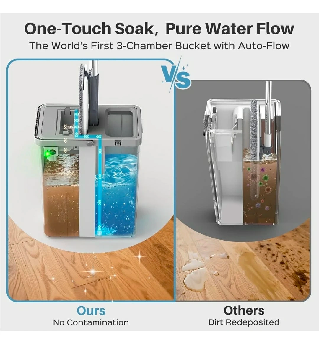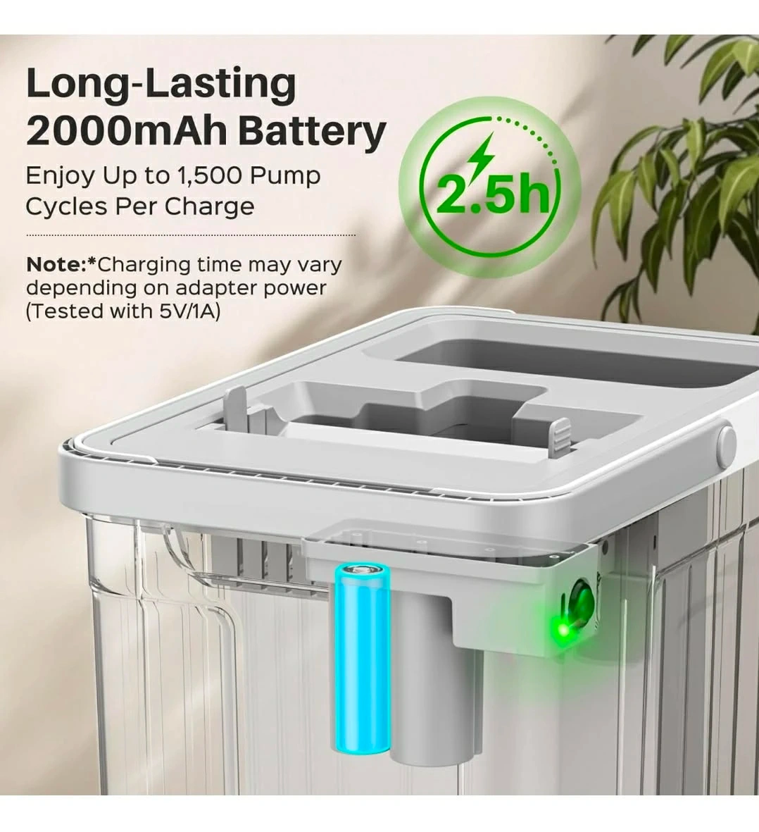 Get your floors sparkling clean with this self-wringing mop bucket cleaning system! It features a long-lasting 2000mAh battery and can handle up to 1,500 pump cycles per charge. The charging time is approximately 2.5 hours. The system also boasts a stable base and rolls easily. Plus, the 12L super tank means no refills are needed for whole-home cleaning!