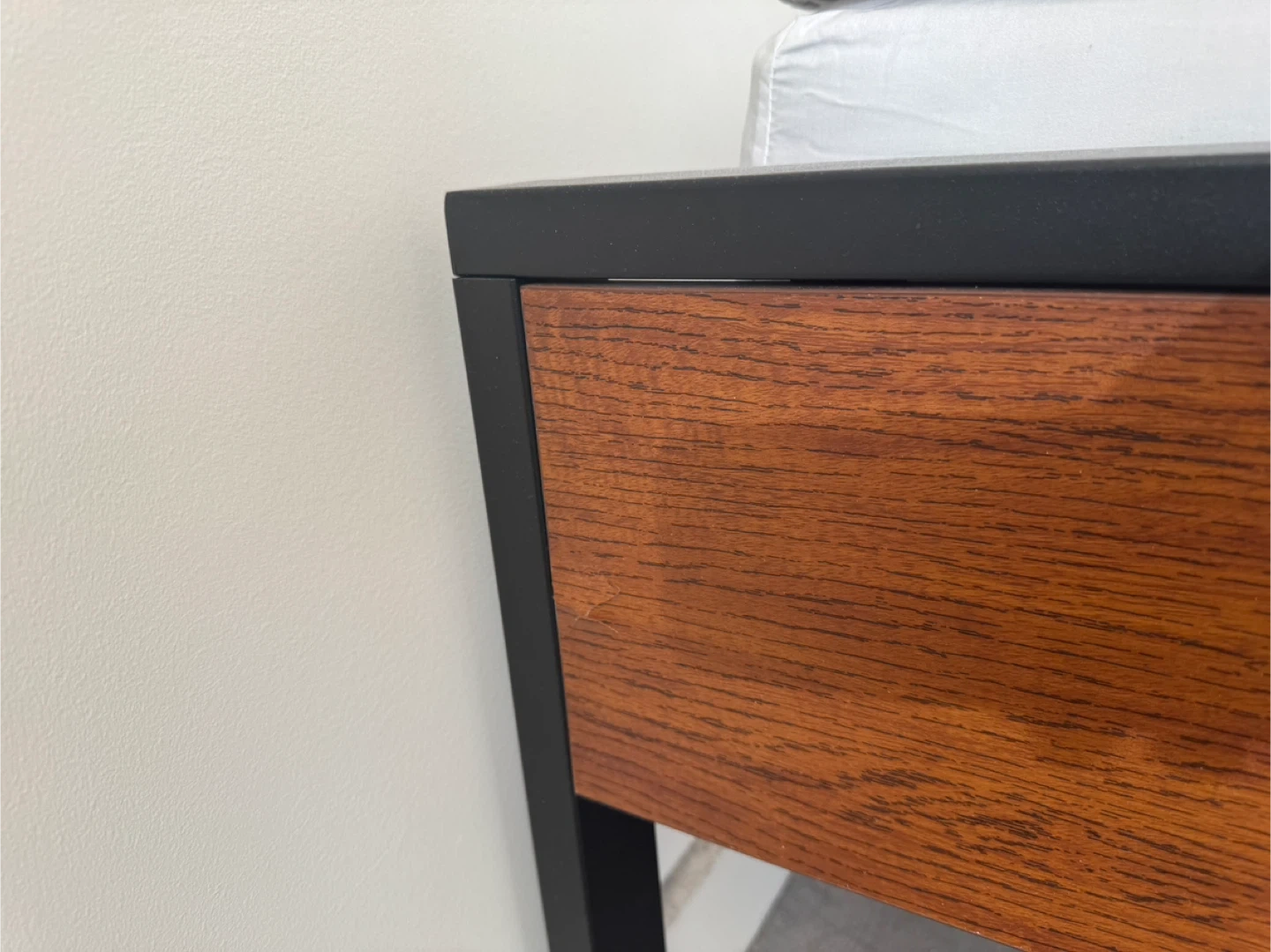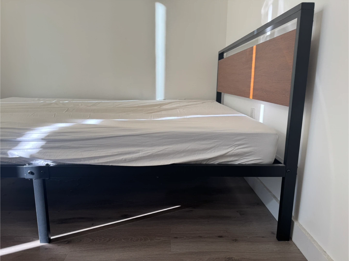 Modern black metal frame with wood look headboard