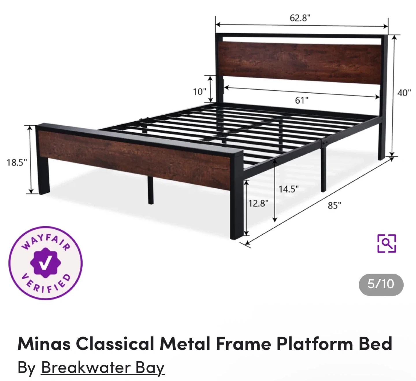 Modern black metal frame with wood look headboard