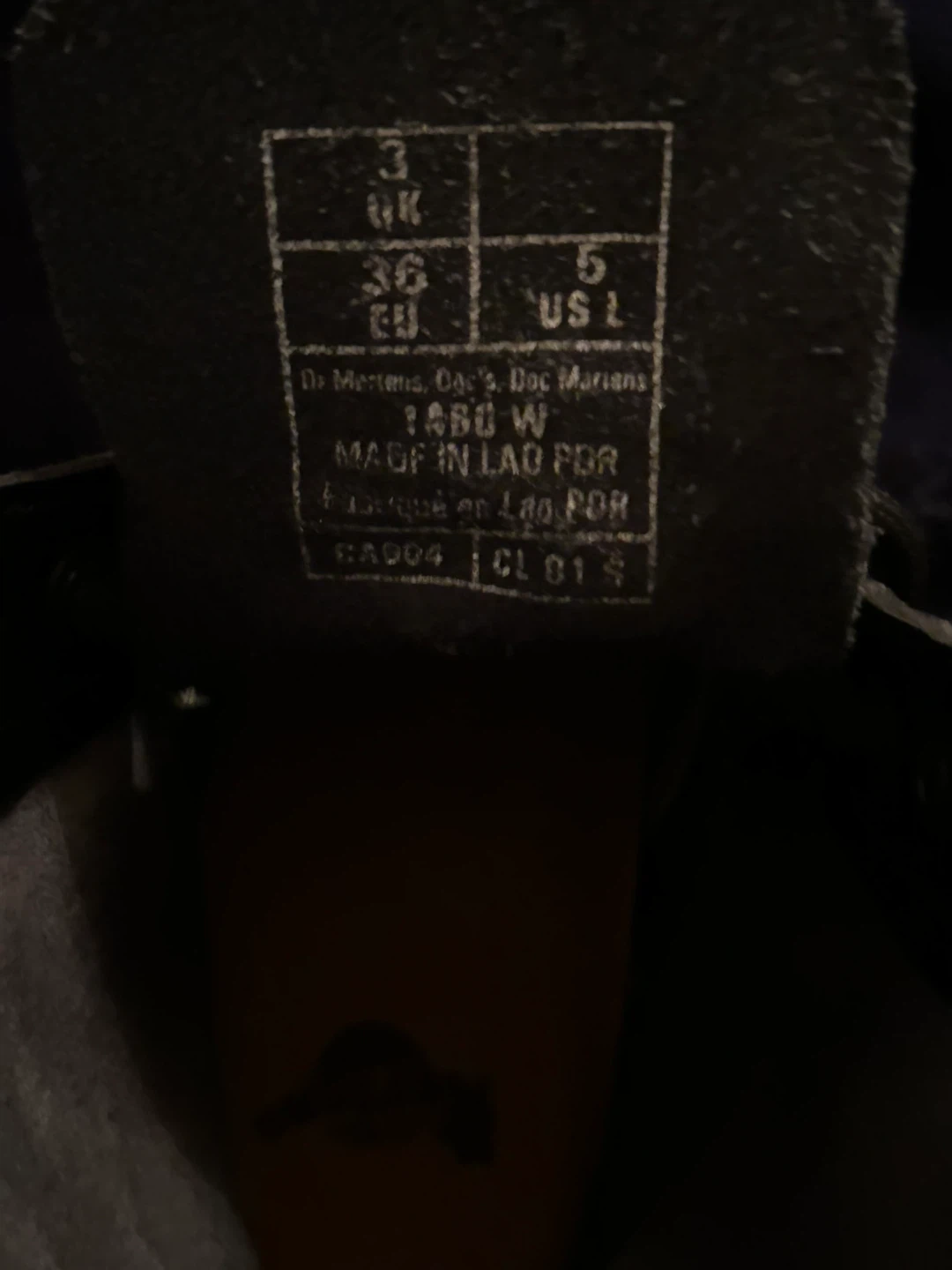 Dr. Martens 1460 W boots in black leather. This is a UK size 3, EU 36, US L 5. Features the classic air-cushioned sole. Perfect for everyday wear!