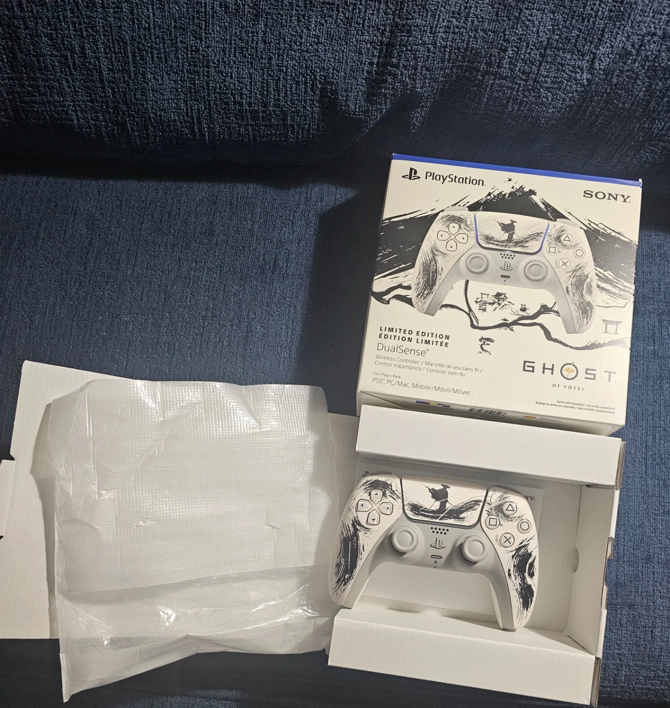 Get your hands on the limited edition Sony PlayStation 5 Dualsense wireless controller, inspired by Ghost of Yotei. This unique controller features a stylish design.