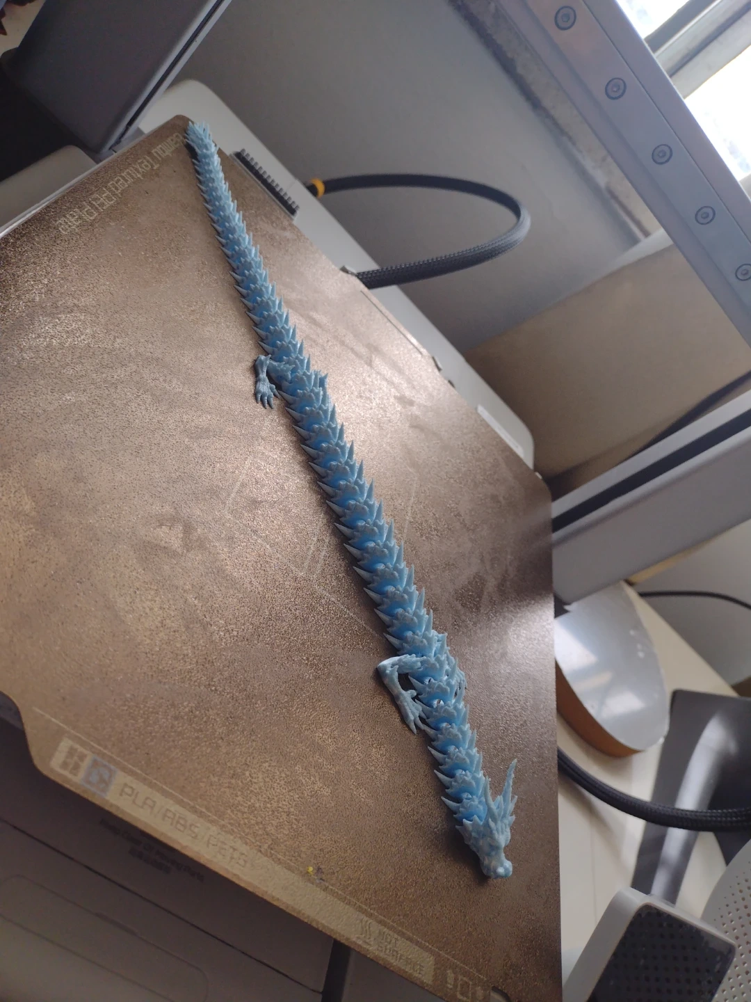 This is a cool articulated dragon figurine, perfect for display or play! It's light blue and has a flexible body. It's about 10 inches long when fully stretched out.