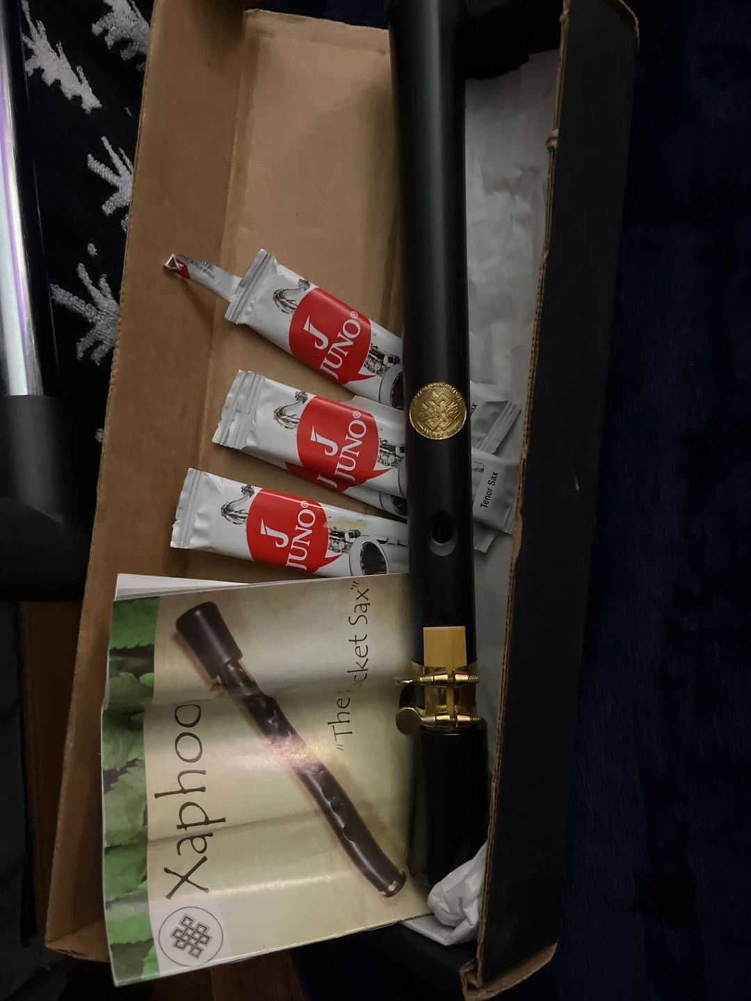 Buy & SellXaphoon The Pocket SaxophoneXaphoon The Pocket Saxophone$100This is a Xaphoon pocket sax! It's a fun light black tenor sax. Includes four Juno reeds and the original manual and box.ConditionLike newWHERE TO MEETHomeView MapSELLERverifiedChrisChurch and Wellesley1104 reviews0 chats·1 favorites·30 viewsSEND CHAT TO SELLERHi Chris! I’m interested in your listing.Hi Chris! I’m interested in your listing.Get the Karrot app to chatSign In to chat