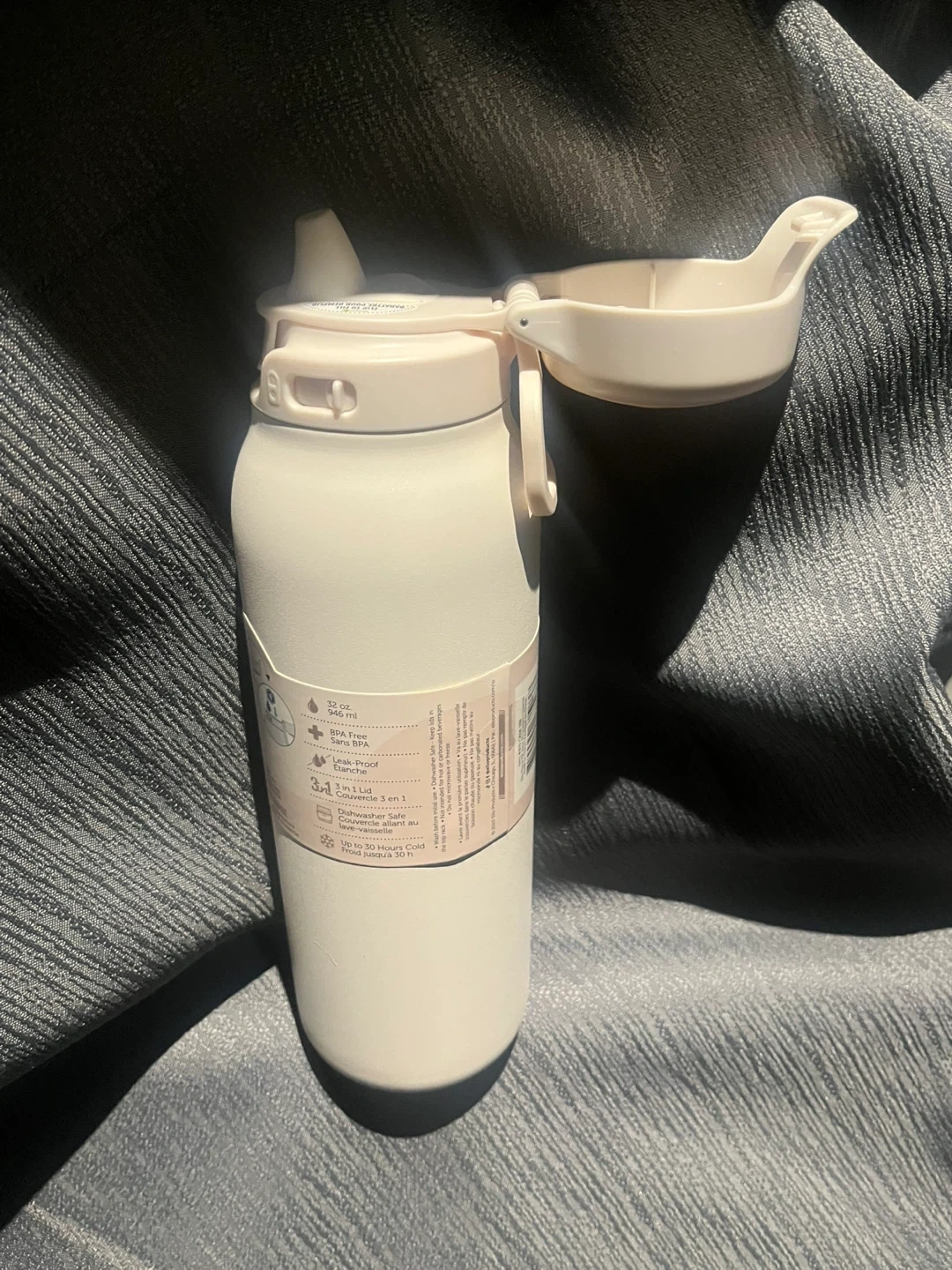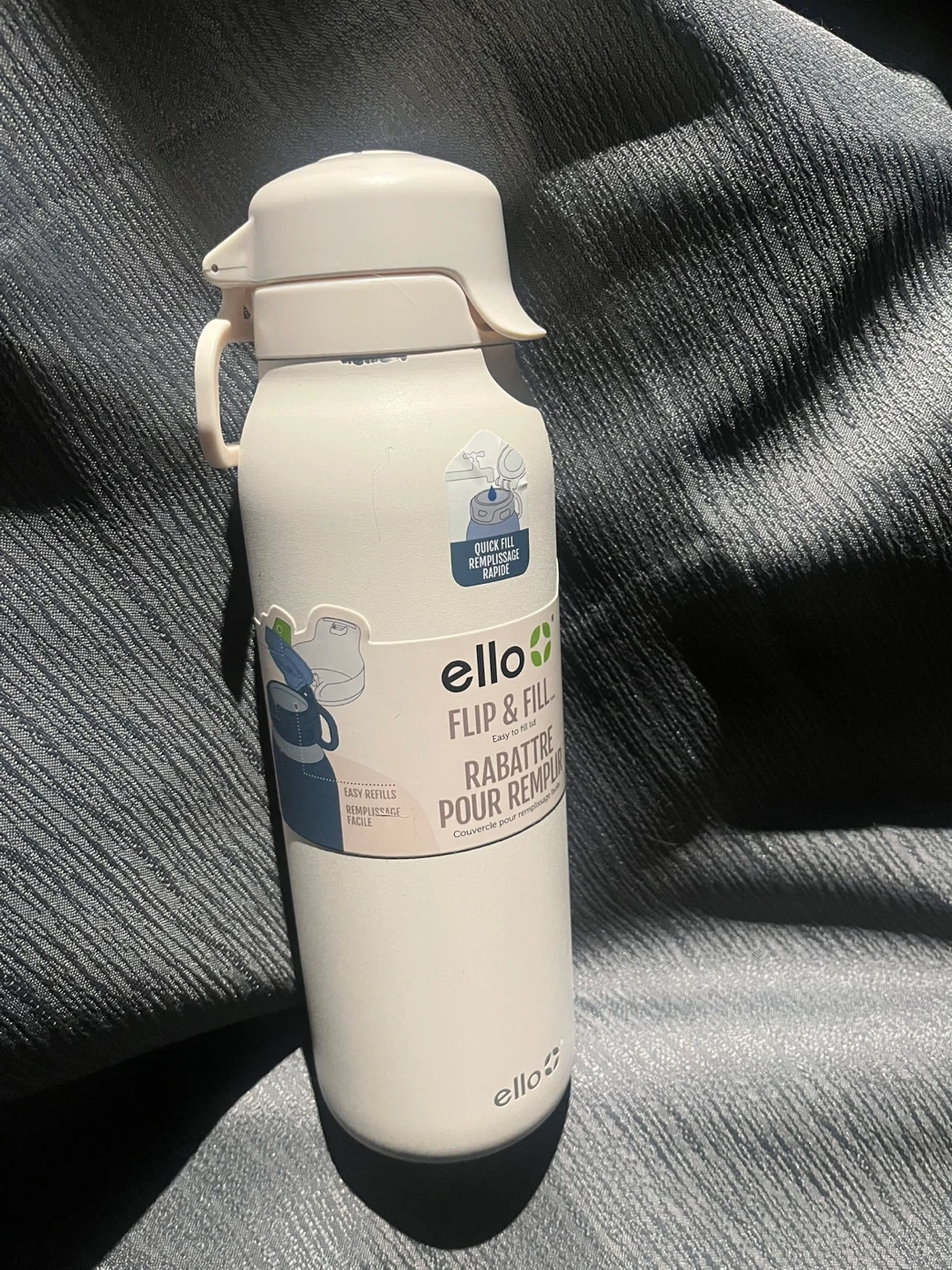 This is an Ello Flip & Fill water bottle. It's a 32 oz capacity. BPA-free and leak-proof design. Quick fill spout makes refills super easy! Small chip noticed underneath that shown in the picture one price to sell!