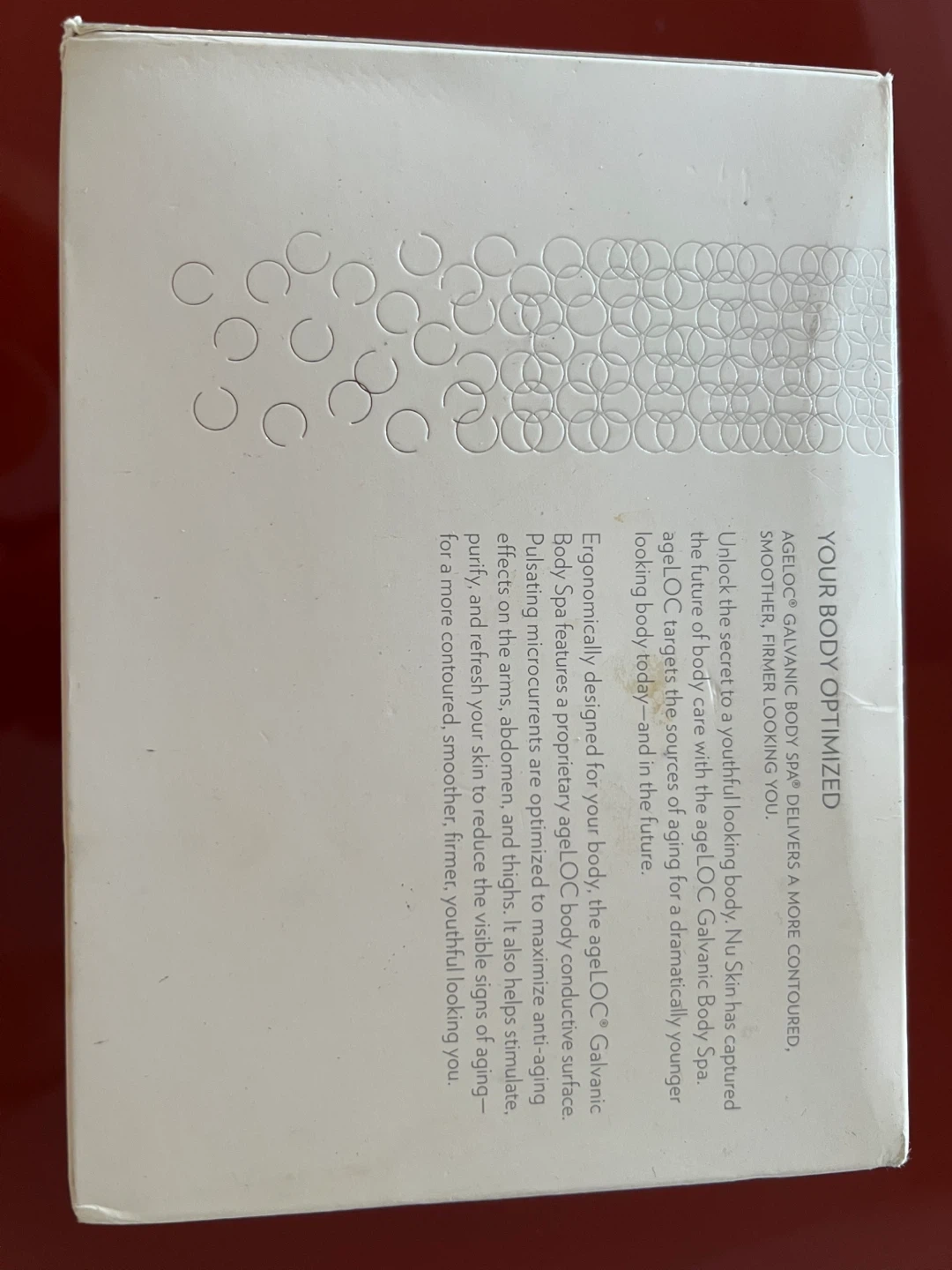 Selling a Nu Skin ageLOC Galvanic Body Spa. It comes with the Galvanic Body Spa device and ageLOC Body Shaping Gel. The box is included. Originally bought for $638