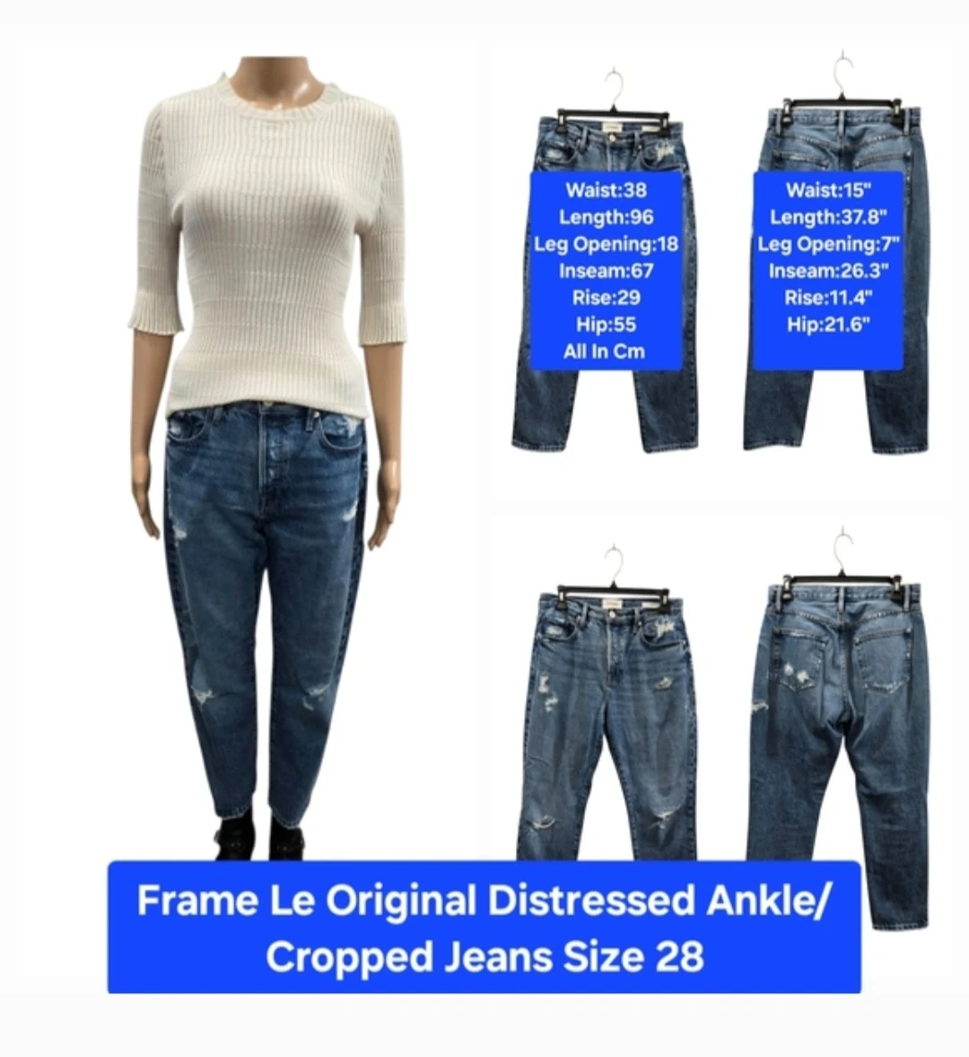 π Frame Le Original Distressed Ankle Cropped Jeans Size 28