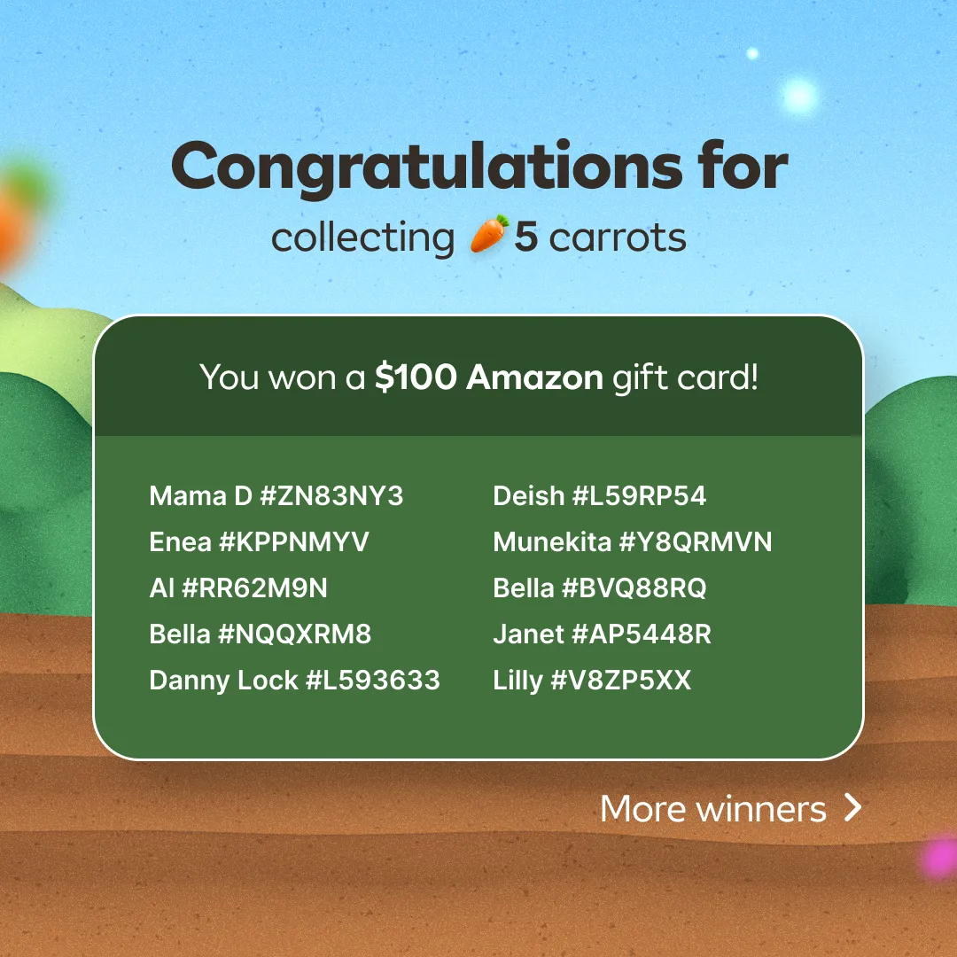 2. Some users may share the same name so please check the unique user number. To view your user number go to My Karrot > View profile. Our team has already reached out to all winners individually.