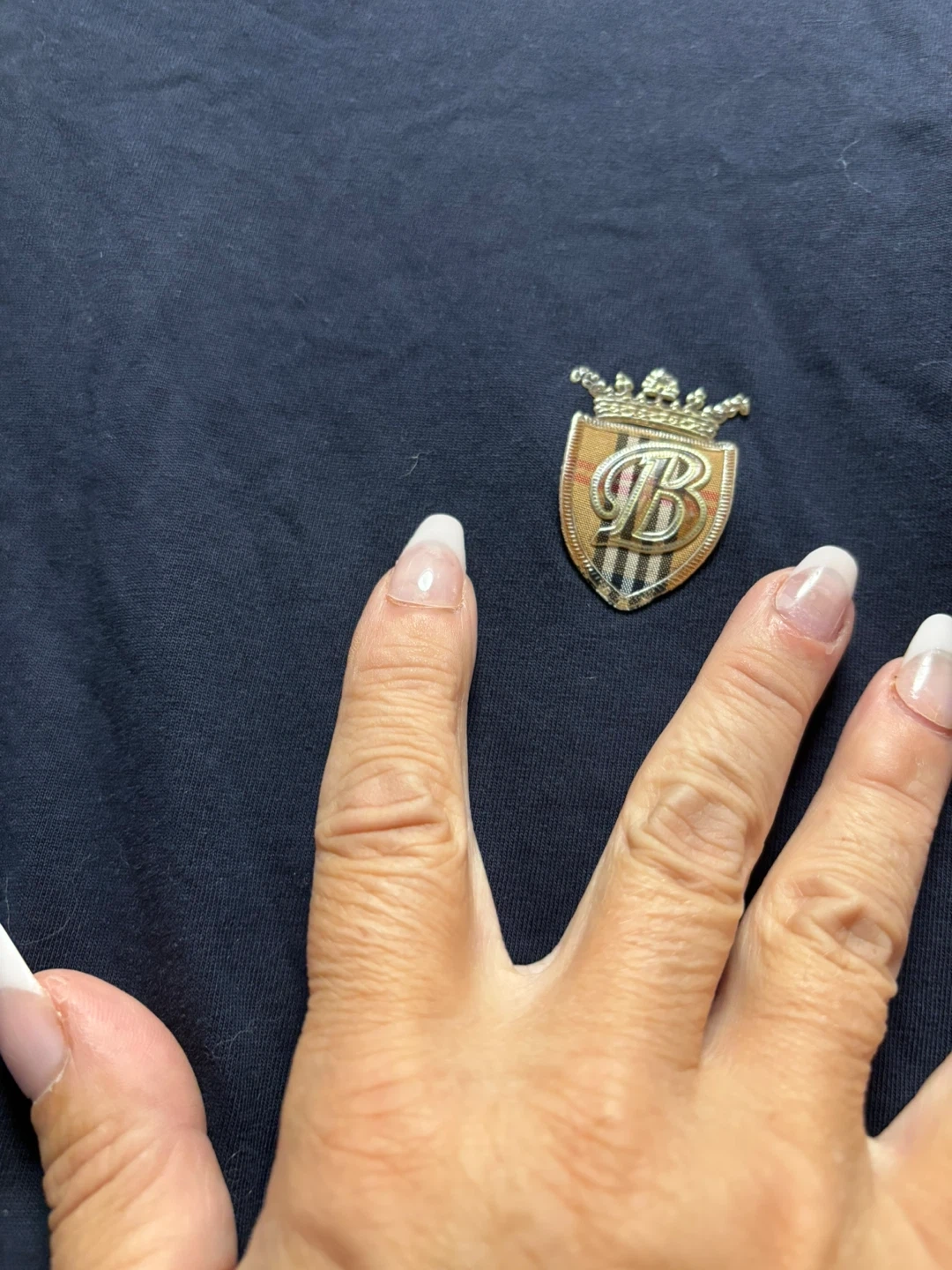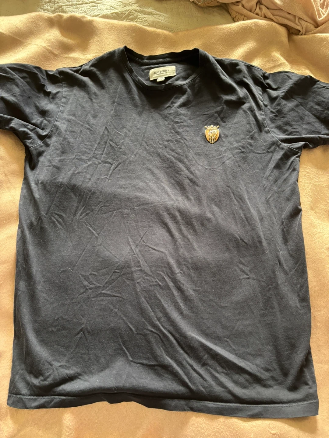 Authentic Navy blue Burberry London England t-shirt. Size L. With a Burberry emblem on front. All authenticity tags. Cotton material.