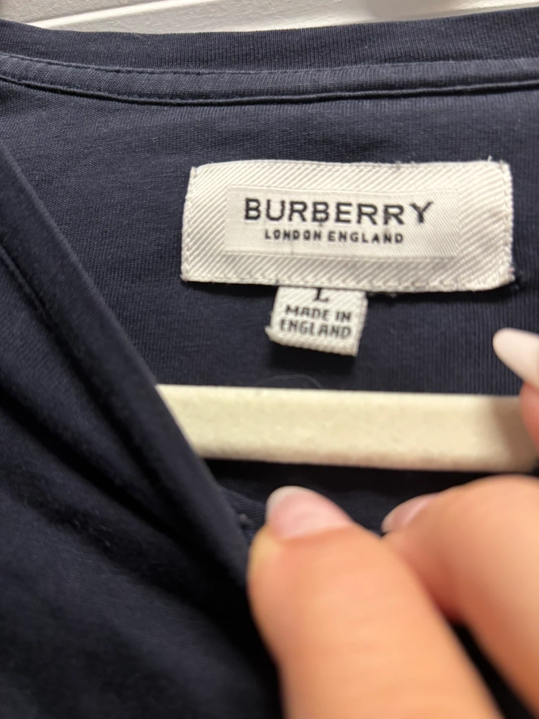 Authentic Navy blue Burberry London England t-shirt. Size L. With a Burberry emblem on front. All authenticity tags. Cotton material.