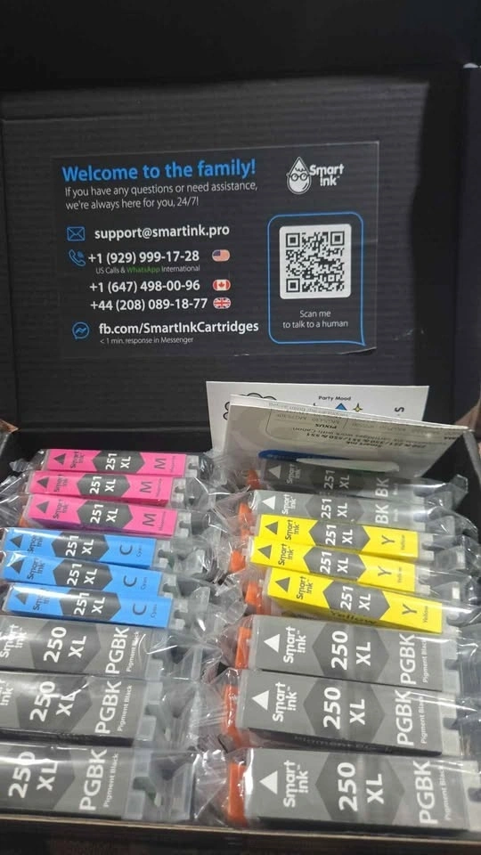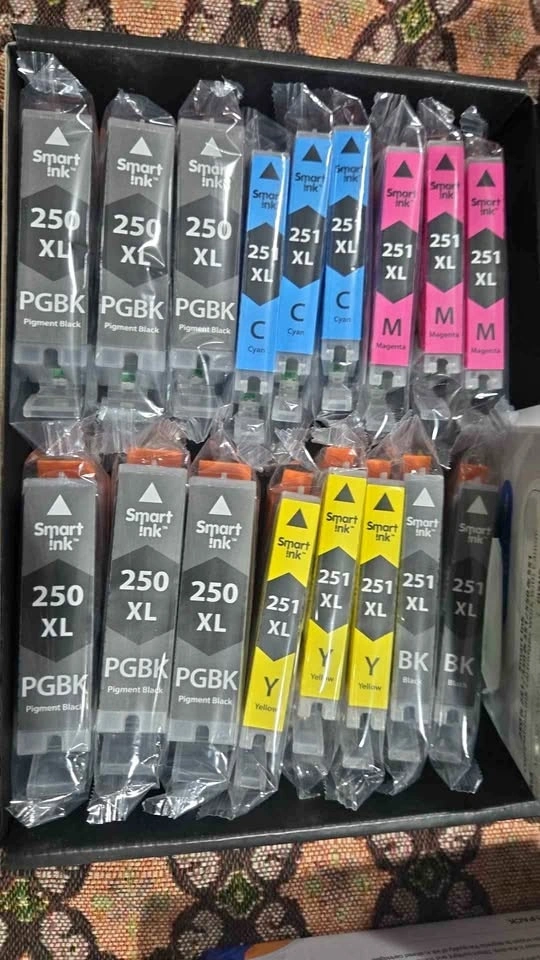 Original ink cartridges for your printer. Includes one 250XL black cartridge and one 251XL color cartridge. Feel free to message if you have any questions!