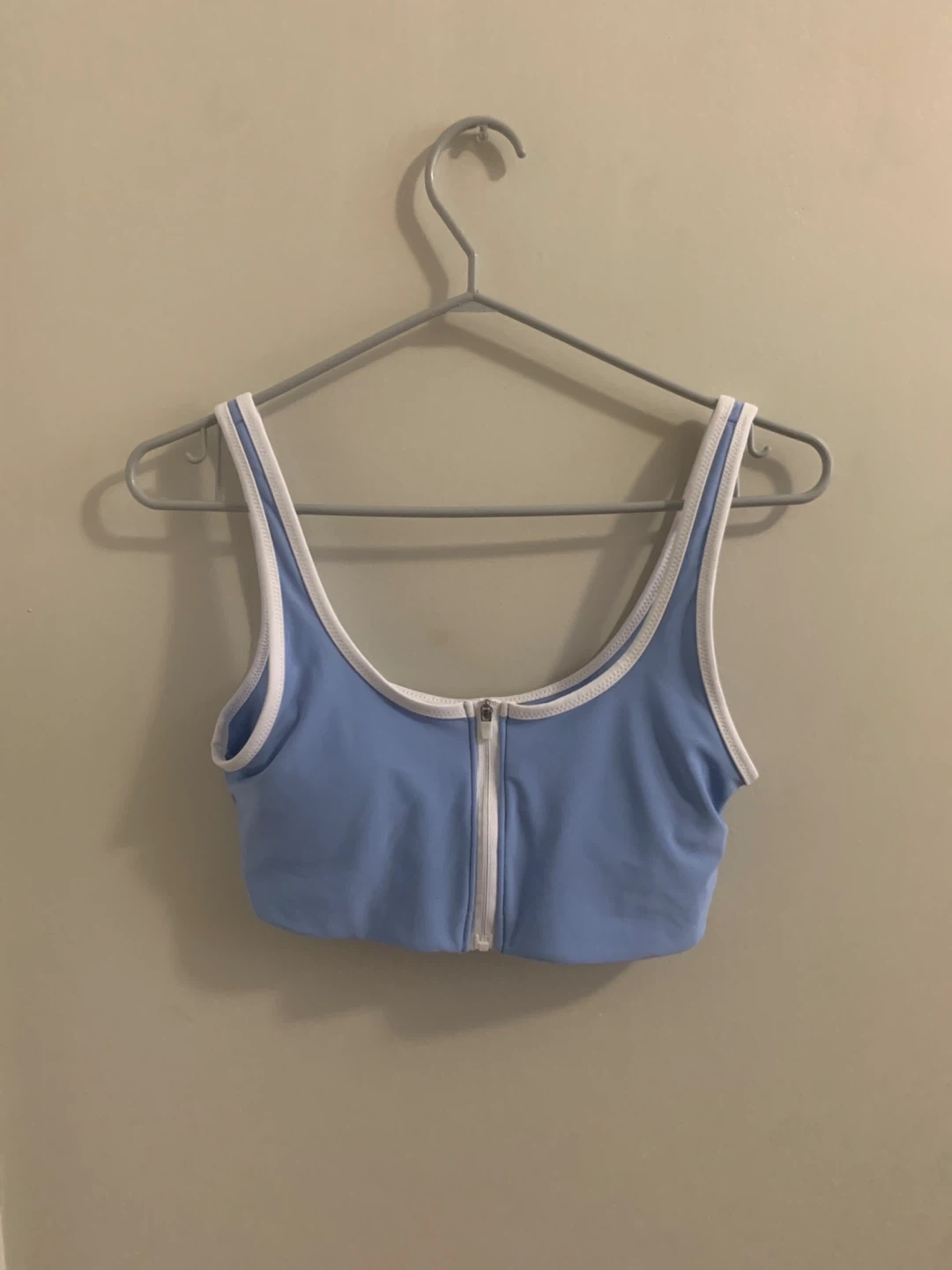 Selling a cute blue swimsuit set. It's in great condition and ready for the summer! The set includes a top and bottoms, perfect for swimming or lounging by the pool