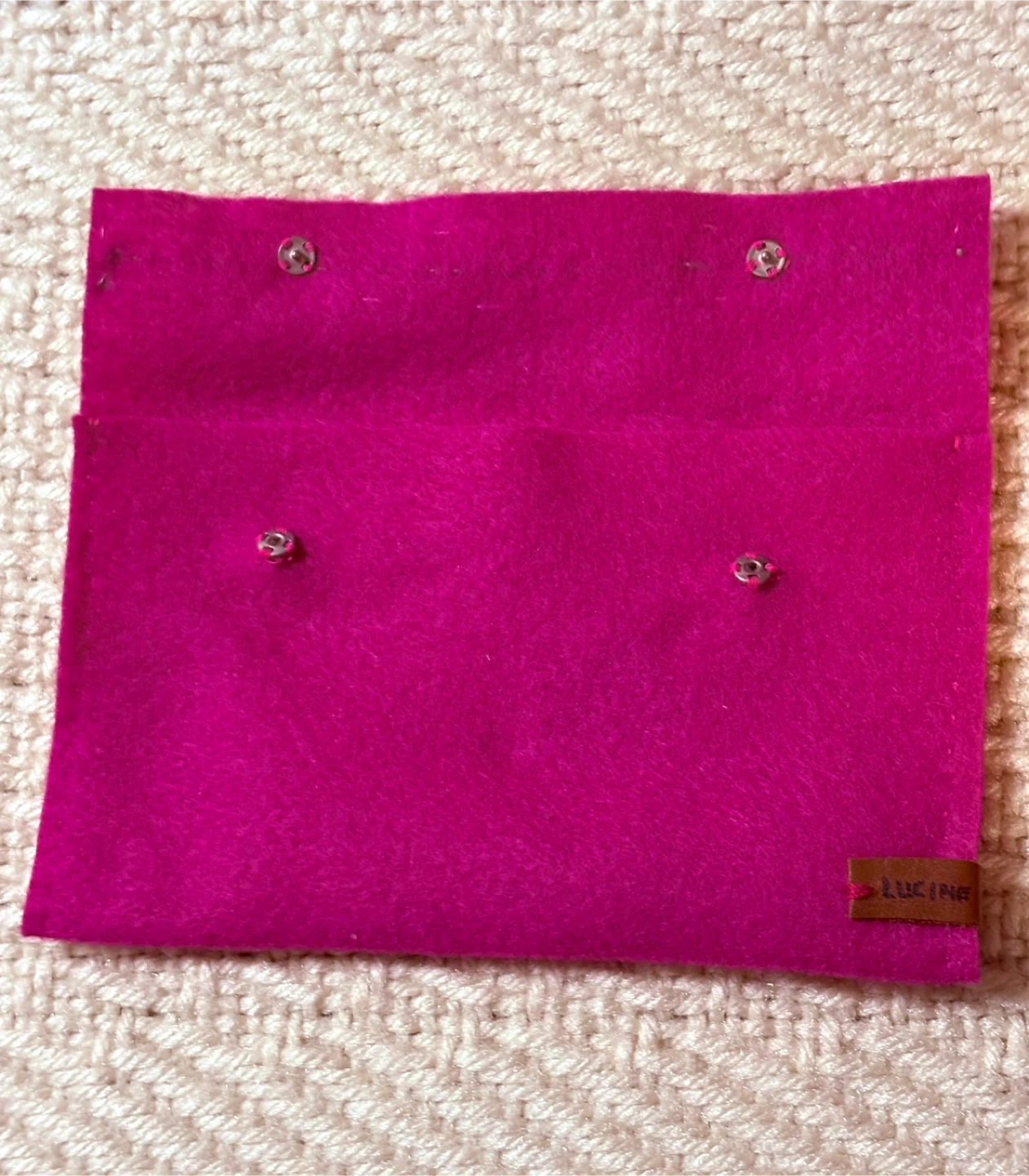 This pink felt jewelry pouch by Lucine Designs is designed to keep your accessories organized. It's made of soft felt material and features a decorative ribbon hand beaded detail. A great way to store earrings or small trinkets, cards, notes etc!