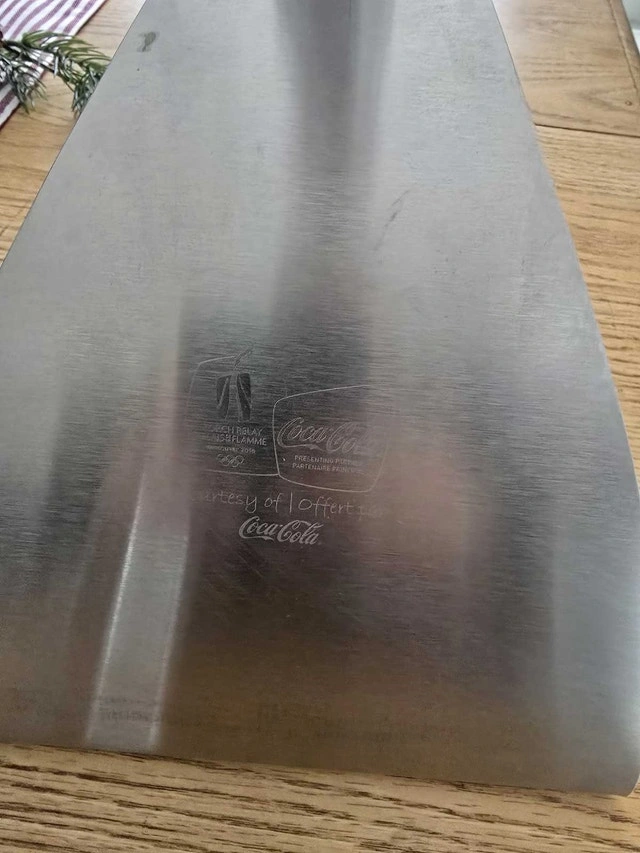 Own a piece of history with this Vancouver 2010 Olympic Torch! This iconic torch is a symbol of the spirit of the games. It is in good condition and has been well-preserved. This would make an excellent gift for the Olympics fan in your life. Don't miss out on this rare opportunity to own a piece of Olympic history! Additional details: * Official Vancouver 2010 Olympic Torch * Features the Vancouver 2010 logo * 'Courtesy of Coca-Cola' on the base. If the ad is up, the torch is available and ready for a new home!
