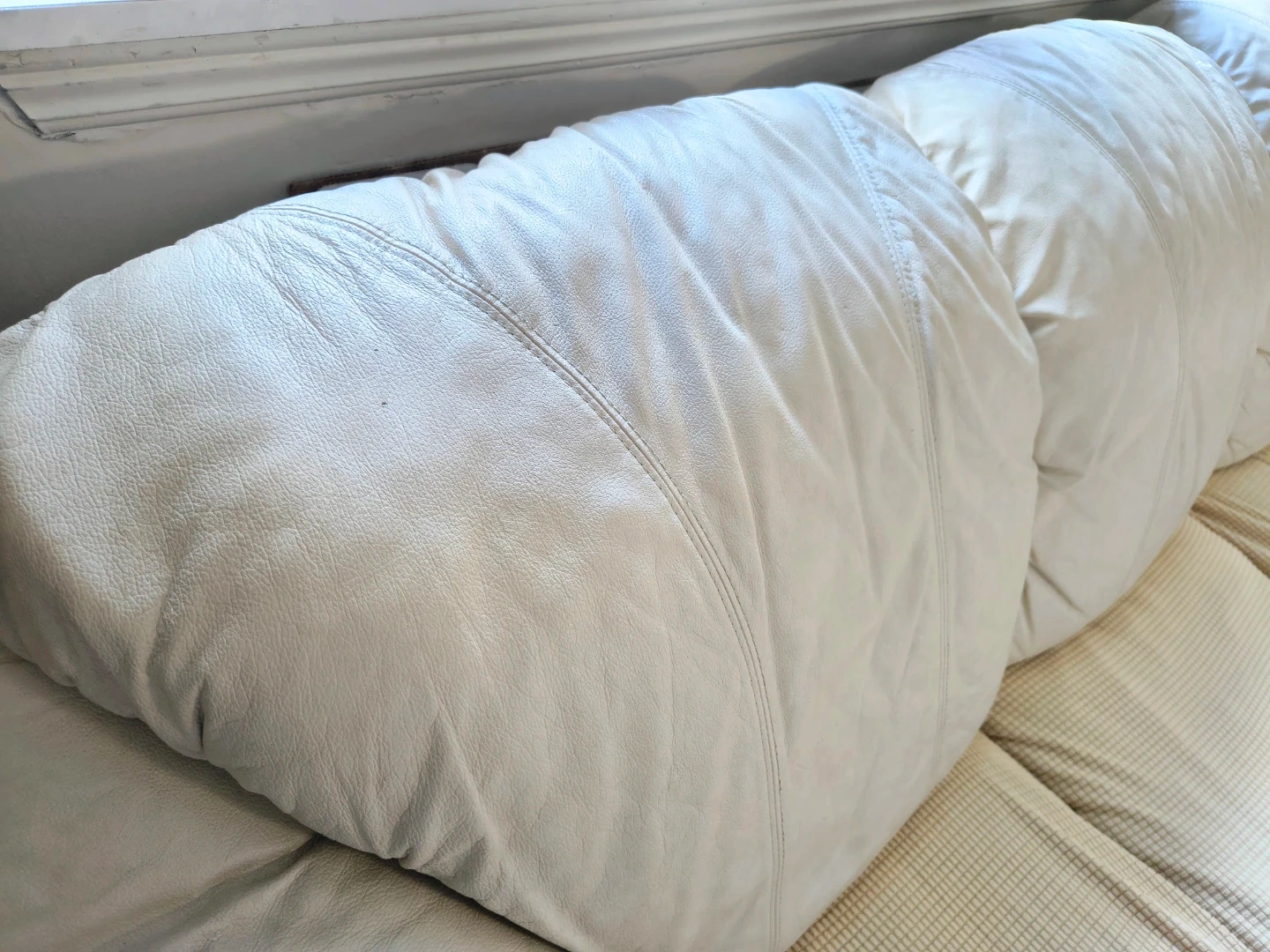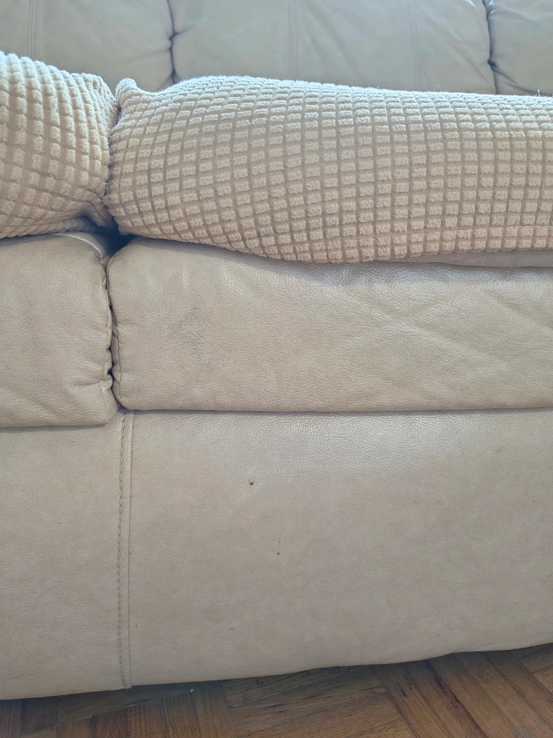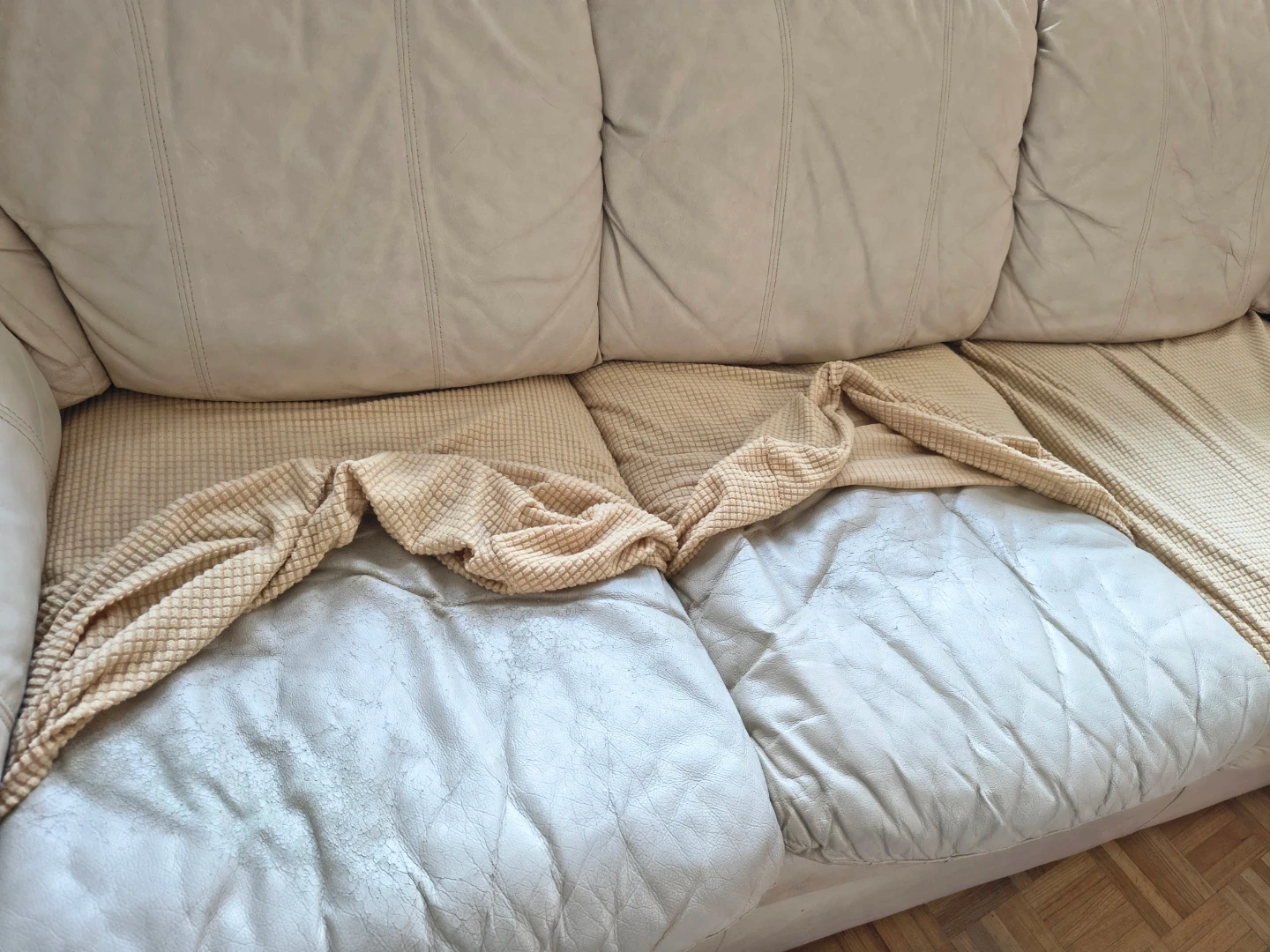 Seat cushions have signs of wear (pictures) so I protect the surface with textured fabric slipcovers.