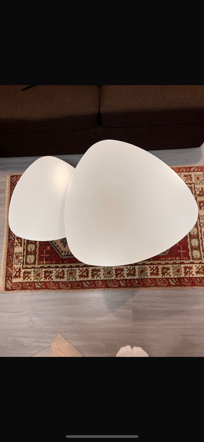 One large and one small white Scandinavian style nesting tables. Selling because of moving. In great condition.
