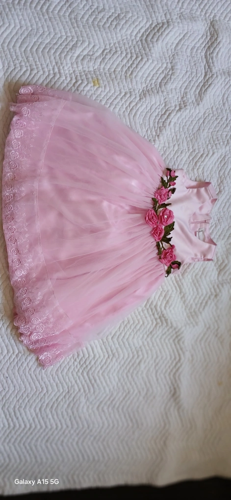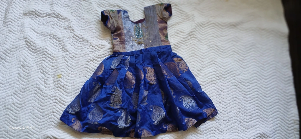 3 frocks 10$ Three beautiful girls' dresses. One blue and gold Pattu Pavadai. One pink and grey Pattu Pavadai with peacock embroidery. One light pink tulle dress with rose embellishments. Suitable for special occasions. Gently used, excellent condition.