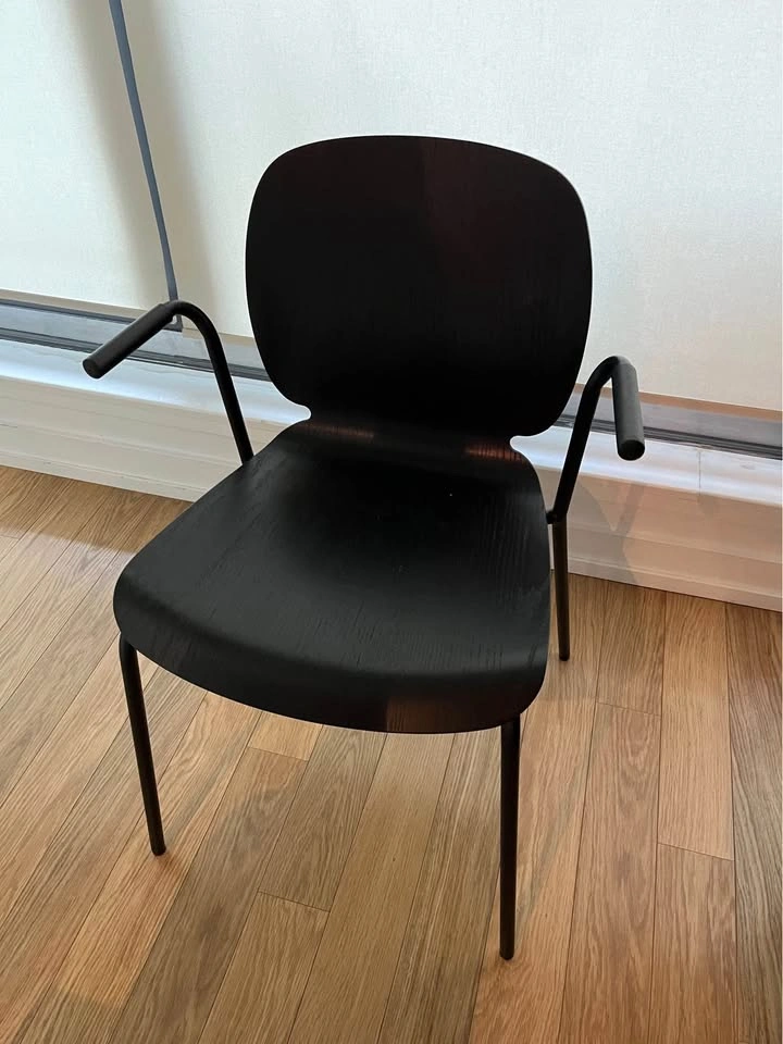 Sturdy Ikea wood dining table with four chairs. Seats up to six people. Removable legs for easy transport. Excellent condition, minor nicks. Dimensions: 67" x 30.75" x 29.5" (170cm x 78cm x 75cm).