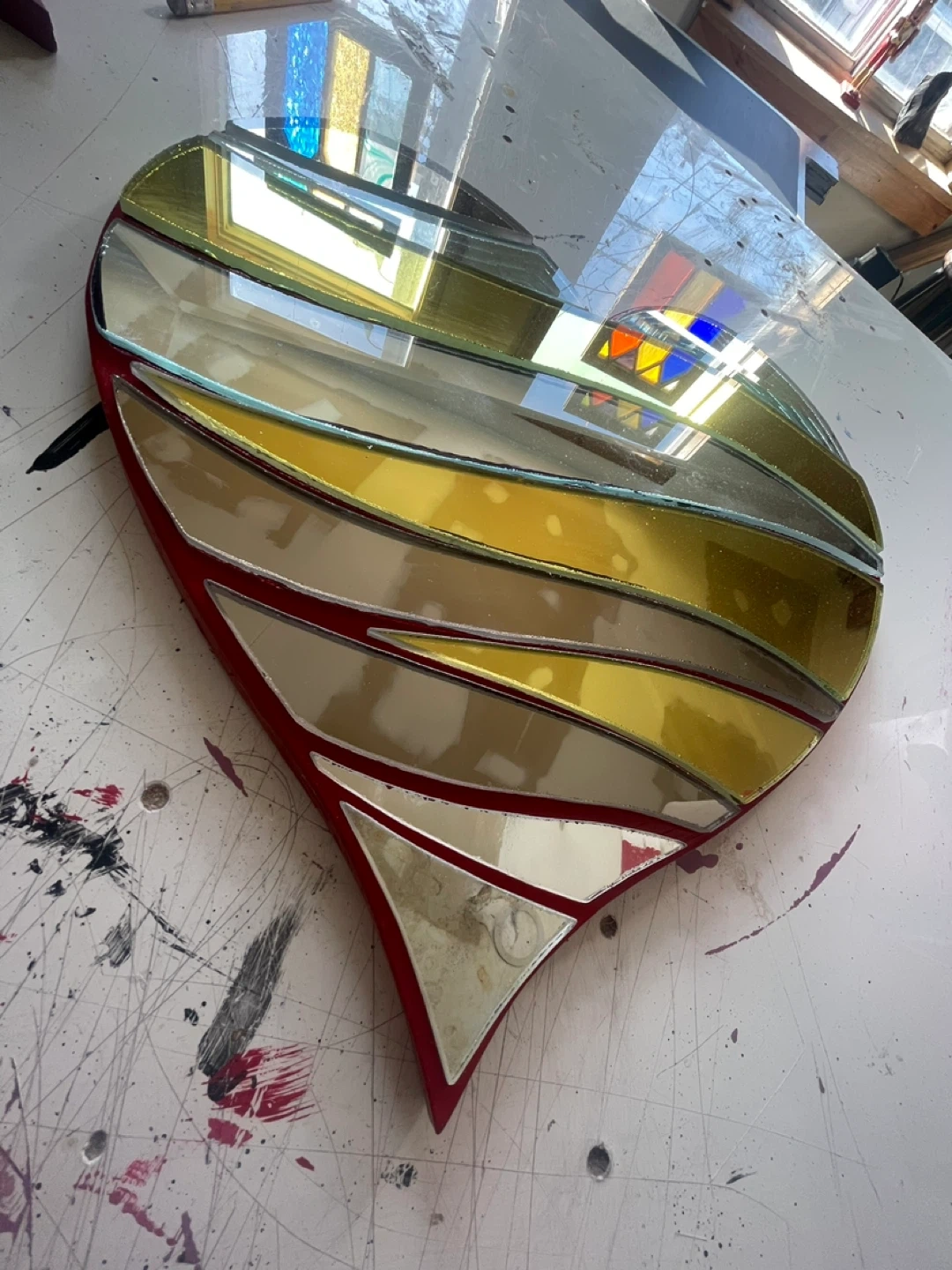 This unique mirror heart-shaped piece is made of multiple styles of mirror glass.