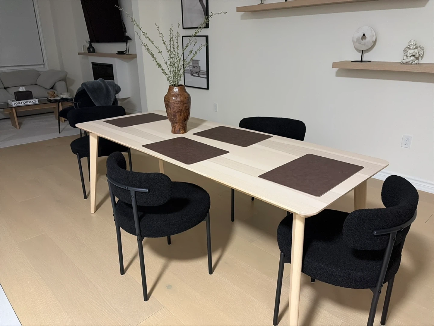 This is an Ikea Lisabo dining table. It's made of ash veneer and measures 200x78 cm (78 3/4x30 3/4 ") no damages mint condition