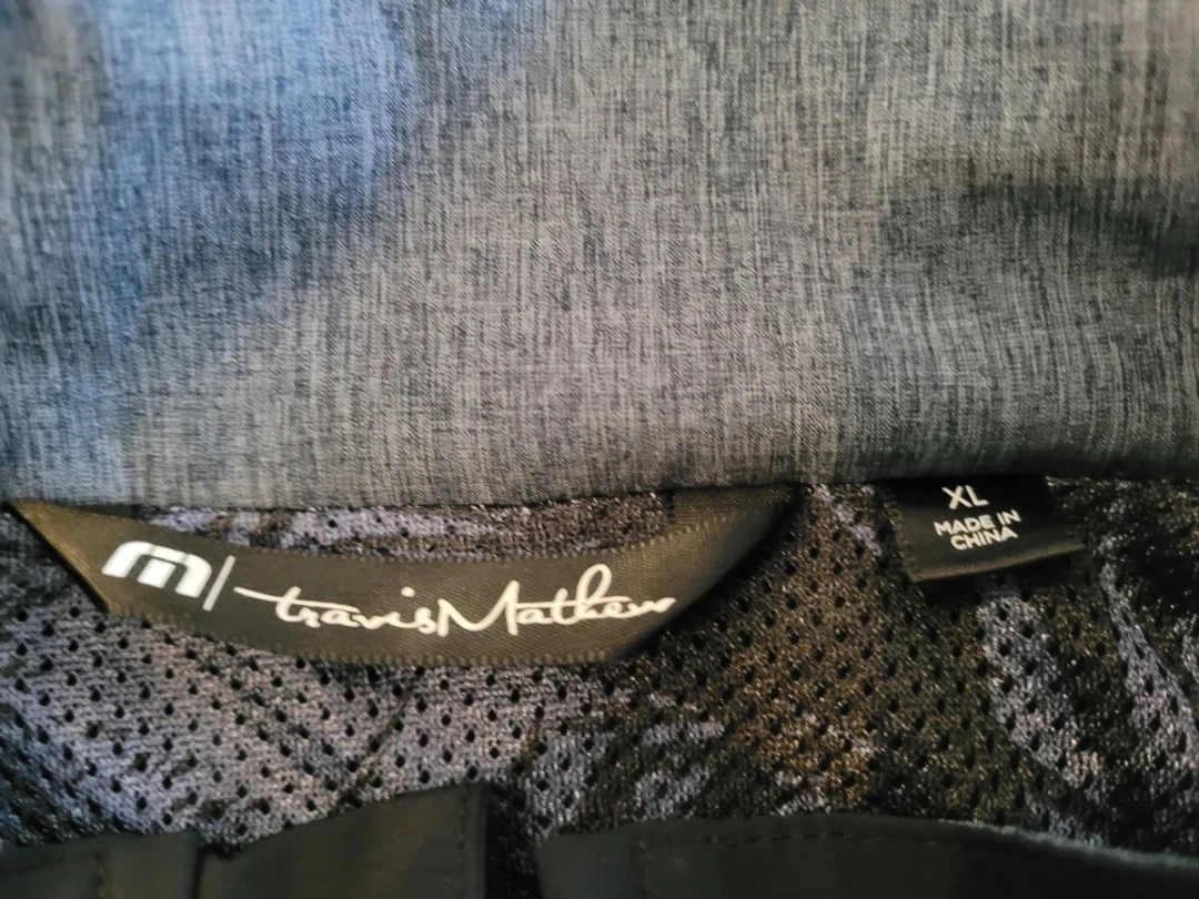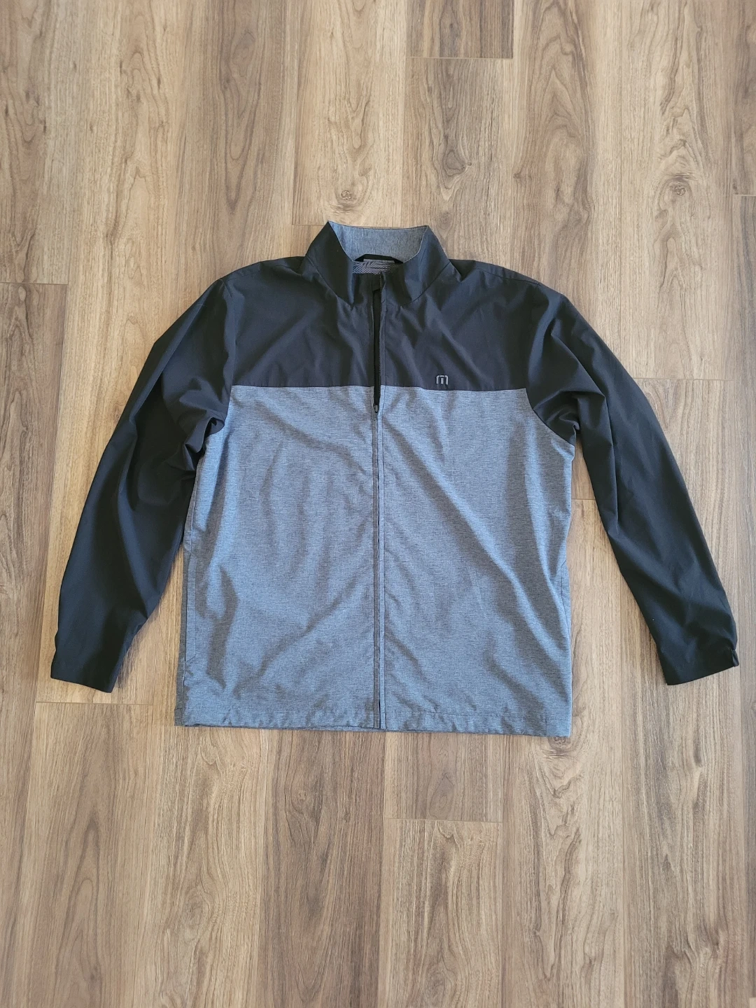 Travis Mathew men's jacket in size XL. It's a full-zip style with a two-tone design. Great for golf or casual wear!
