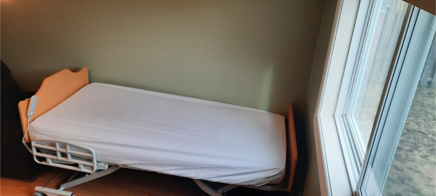 Adjustable hospital bed with remote control for multiple. This bed is great for individuals needing extra support and adjustability. Comes with rails and Roho bed cushion with brand new cover. Bed is located in Brampton.