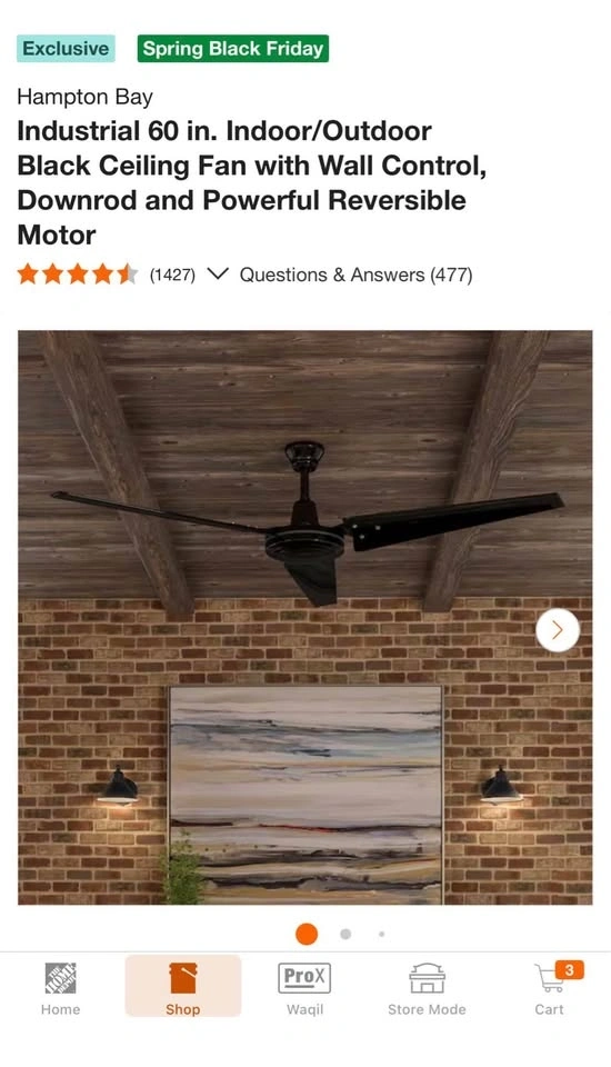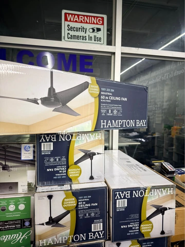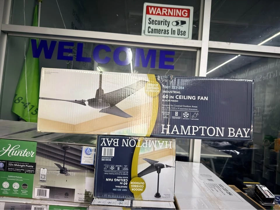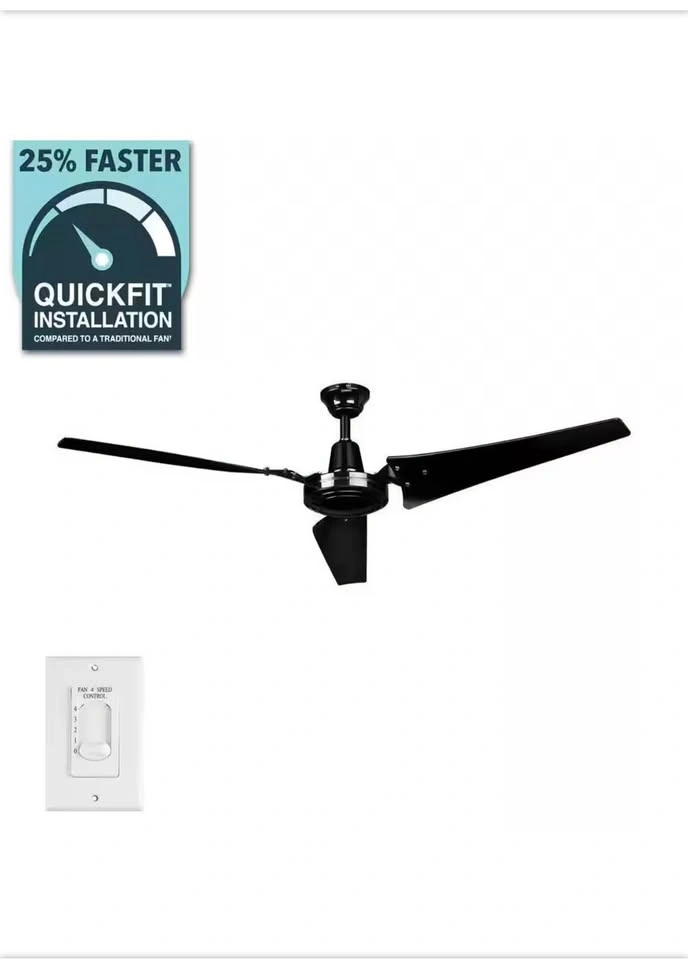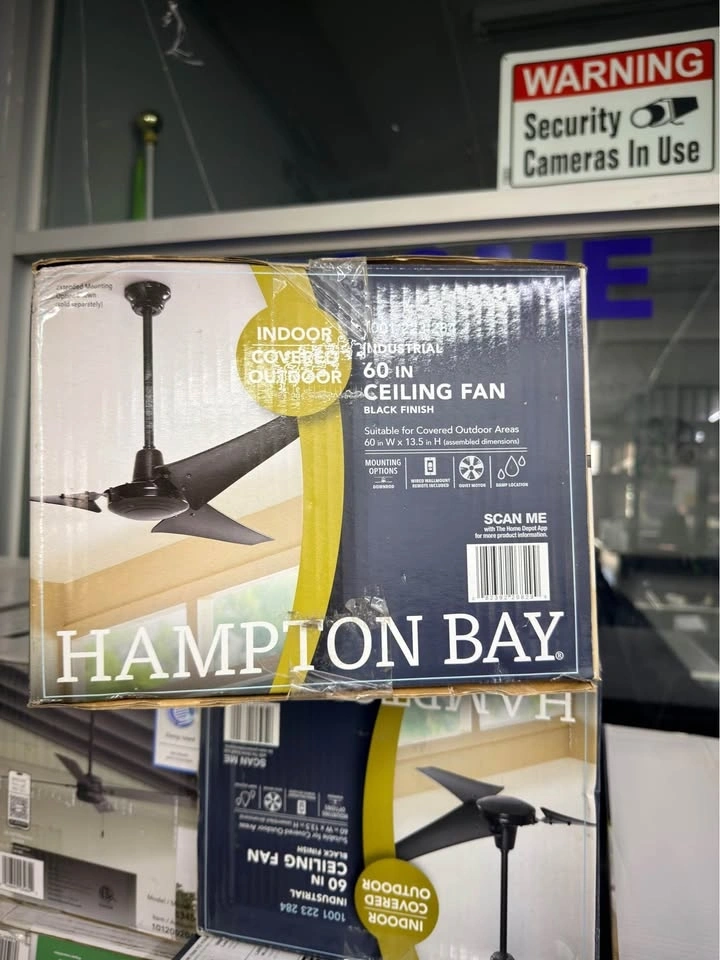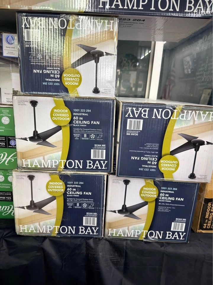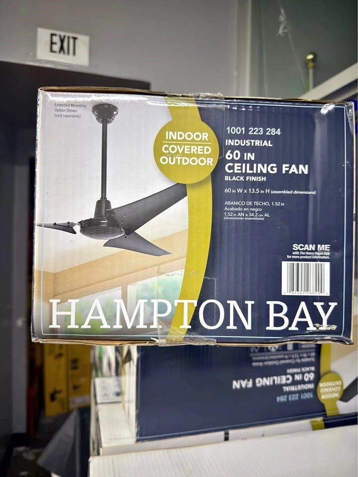Hampton Bay Industrial 60 in. Indoor/Outdoor Black Ceiling Fan with Wall Control, Downrod and Powerful Reversible Motor. 10 available.