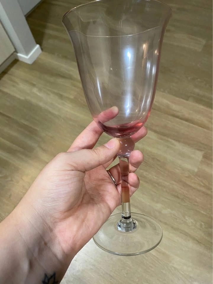 Pink Crystal Romania Wine Glass Goblets - Set of 4