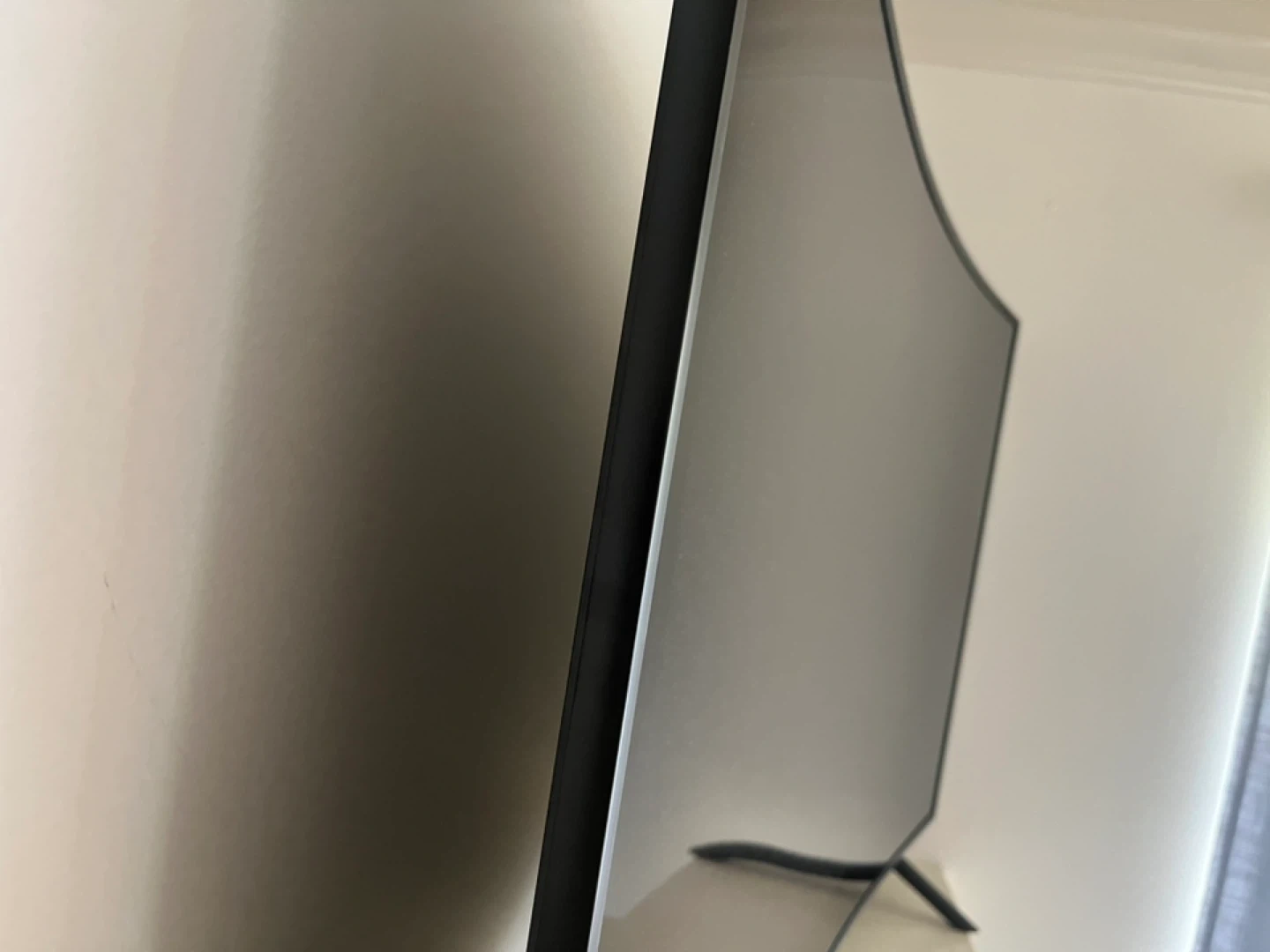 This is a Samsung curved screen smart TV. It has a sleek, modern design. It's perfect for a living room or bedroom entertainment setup.
