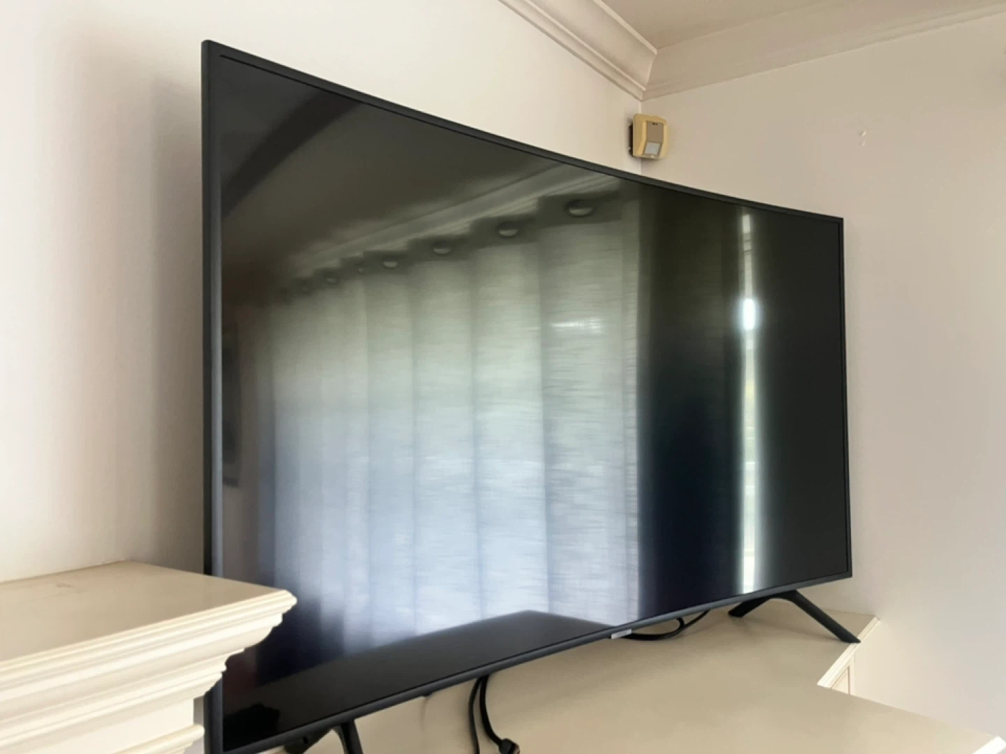 This is a Samsung curved screen smart TV. It has a sleek, modern design. It's perfect for a living room or bedroom entertainment setup.