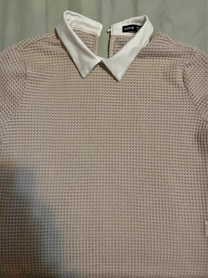 Shein Cream Knit Top with White Collar – Size S – Like New