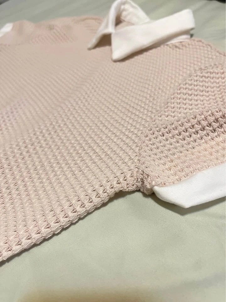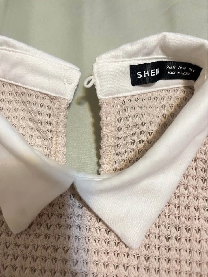 Shein Cream Knit Top with White Collar – Size S – Like New