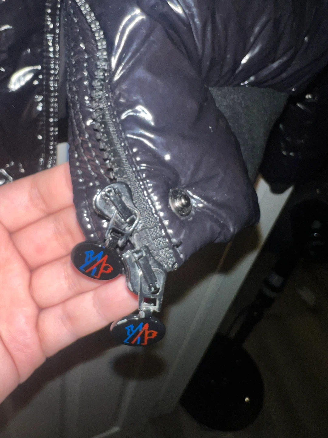 Selling a stylish Moncler black puffer jacket, not 100% sure it’s authentic but can pass. It's in great condition and ready to keep you warm this winter! The jacket features a glossy finish and iconic Moncler logo details on the zipper pulls and tag. Perfect for staying fashionable in the cold weather.