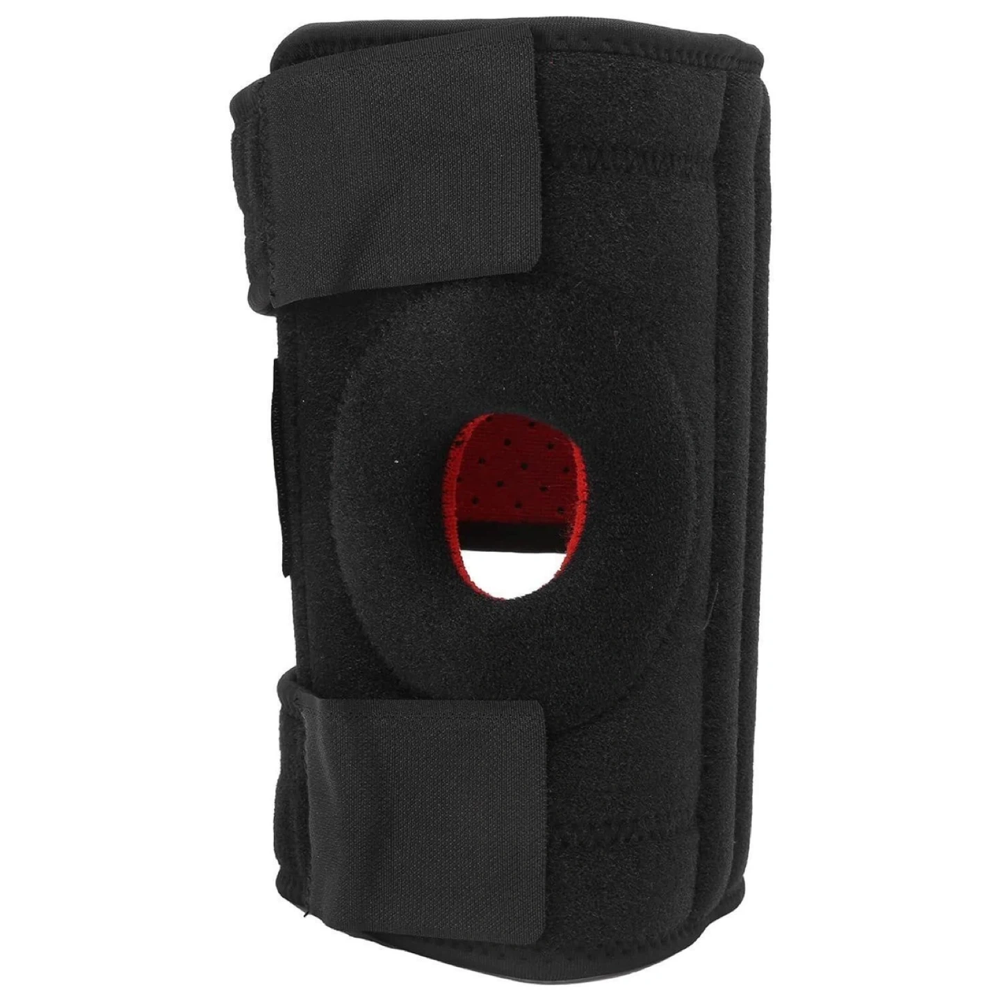 Perforated Breathable Knee Pad, Sports Safety Protective Gear with EVA Gasket, Anti Skid Strip, Adjustable Straps and Metal Spring Support for Basketball, Badminton, (Black Red)