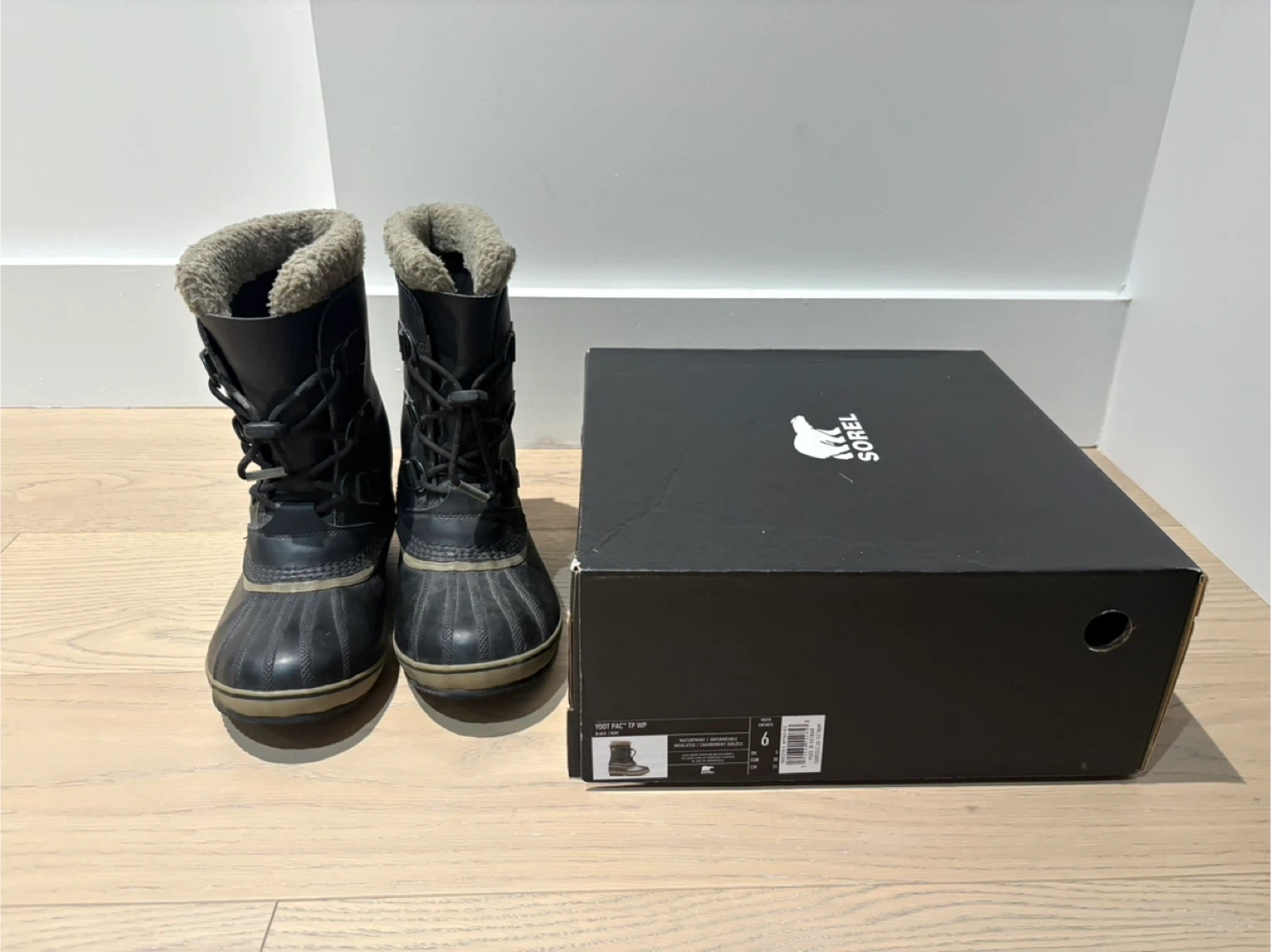 Selling a pair of Sorel Yoot Pac TP WP youth winter boots in size 6. The boots come with their original box. They were used one season.