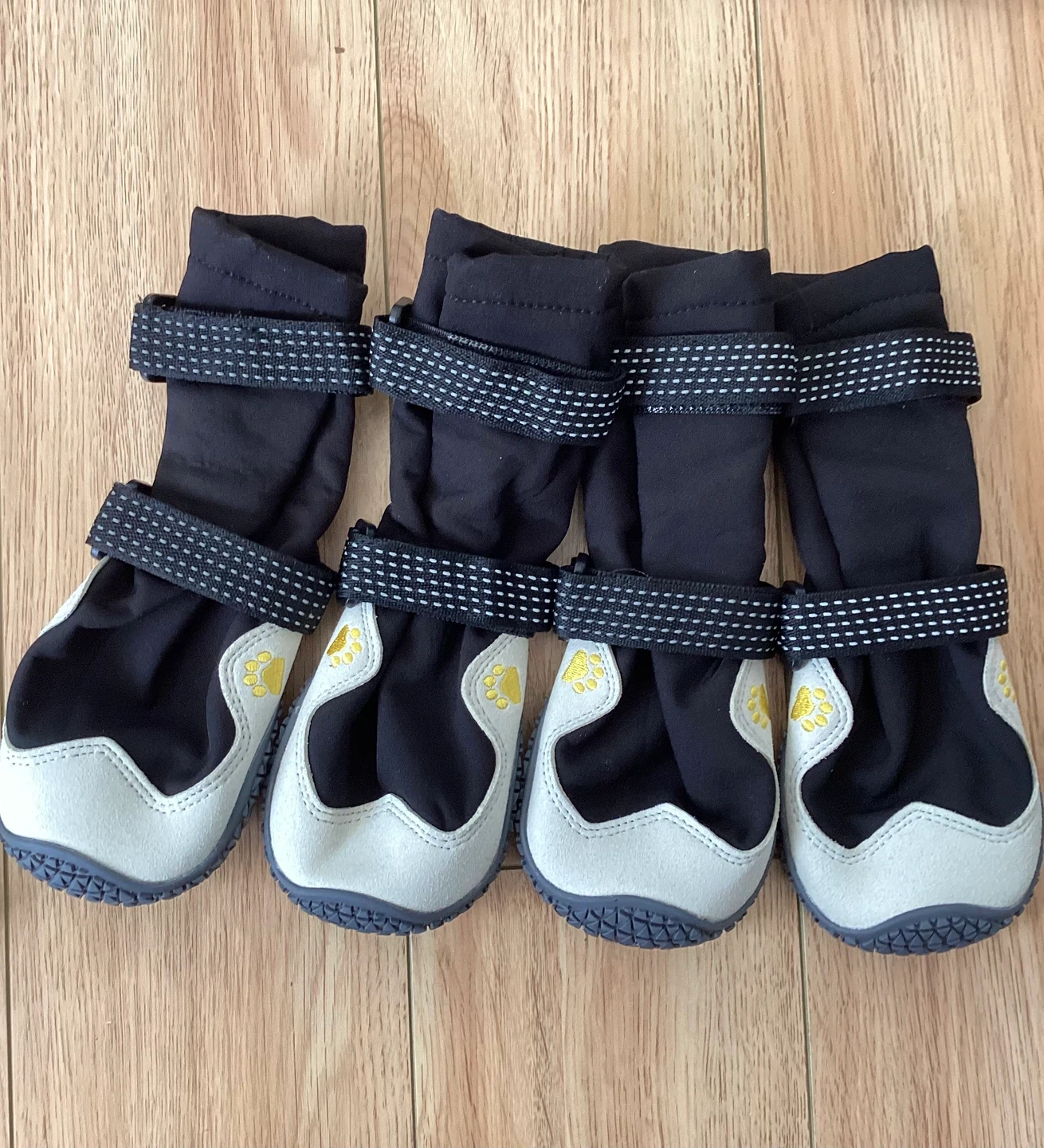 New unused PawTrek Adventure Boots designed to protect your dog's paws. They're made with durable, breathable fabric and a tough rubber sole to resist abrasion. Adjustable Velcro straps ensure a snug fit for comfort and protection. These boots are suitable for all conditions, from hot pavement to snow and rain!