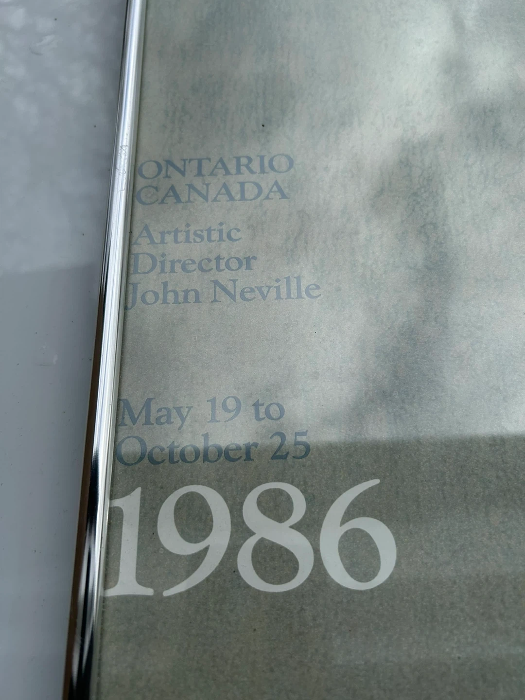 Vintage poster for the Stratford Festival in Ontario, Canada. Features artwork and lists the dates May 19 to October 25, 1986. John Neville was the Artistic Director.20 1/2 x 30 1/2 inches