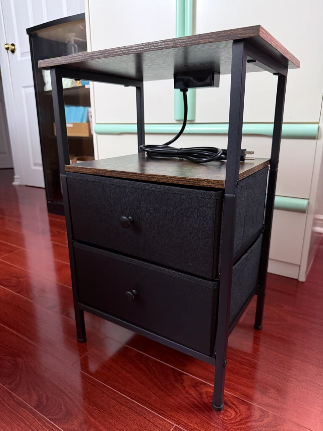 Side table/ Nightstand with 2 Drawers and Built in Power Outlet