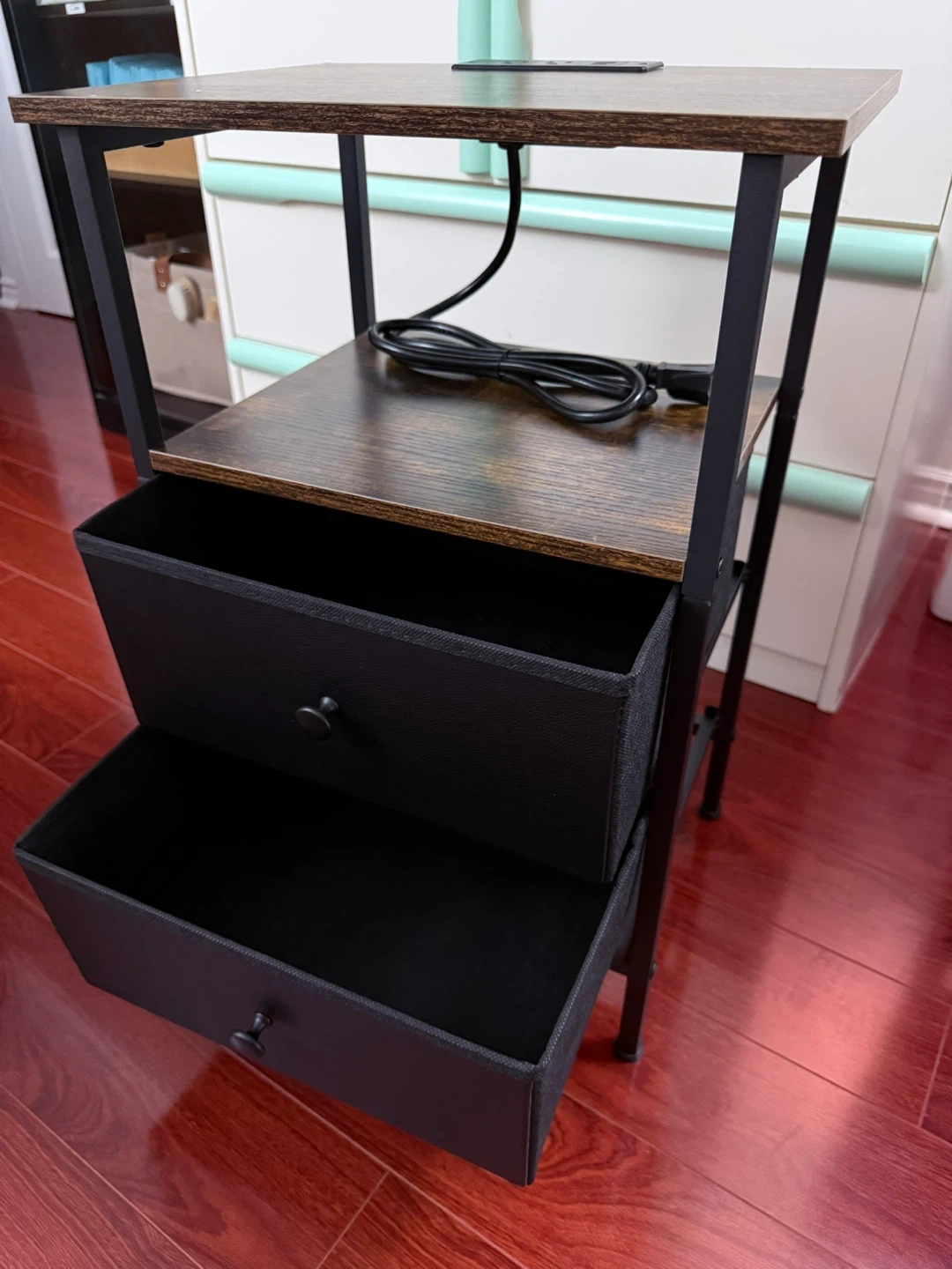 Side table/ Nightstand with 2 Drawers and Built in Power Outlet