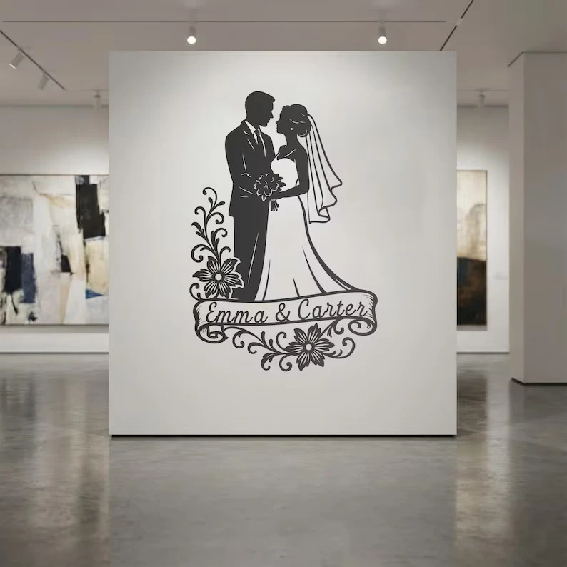 Custom metal wall art made with names, dates, or text of your choice.