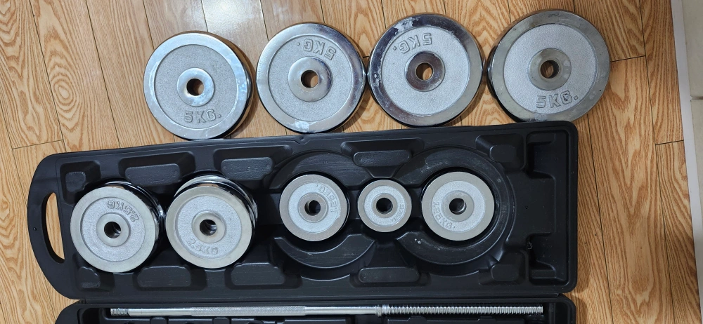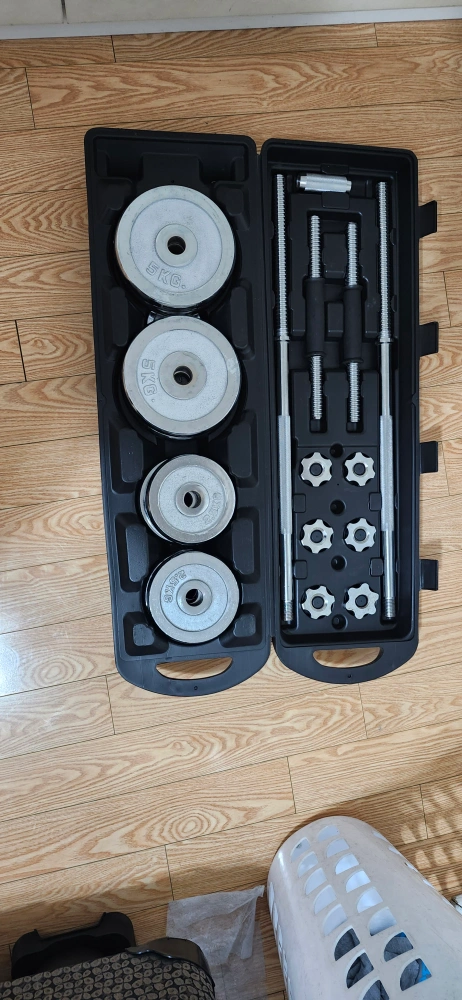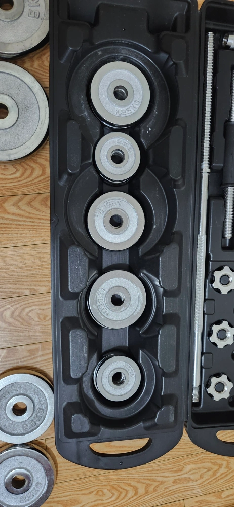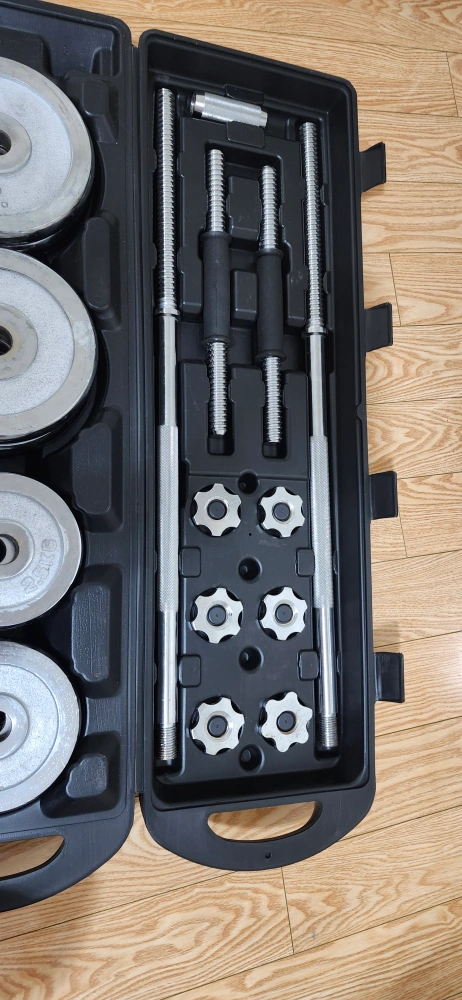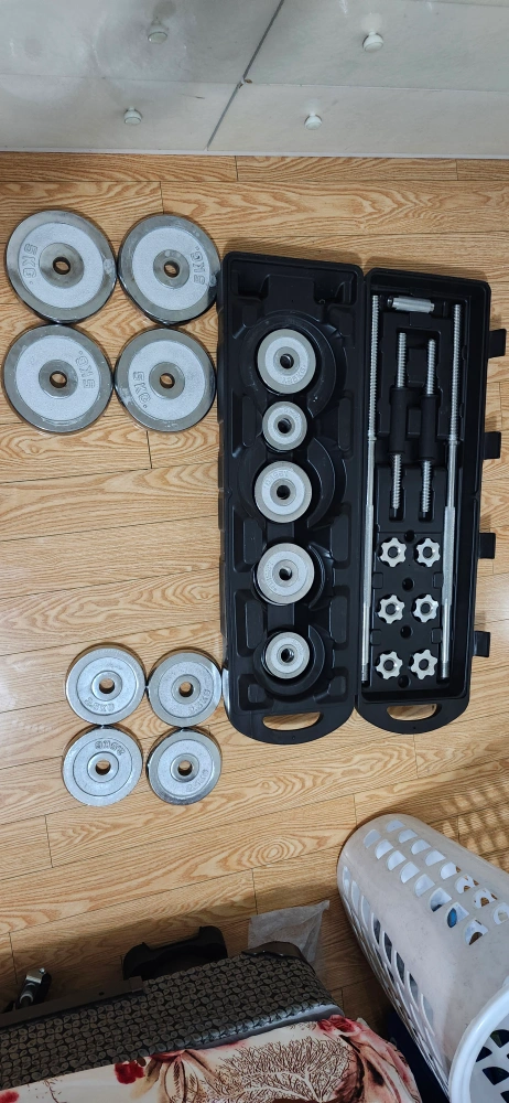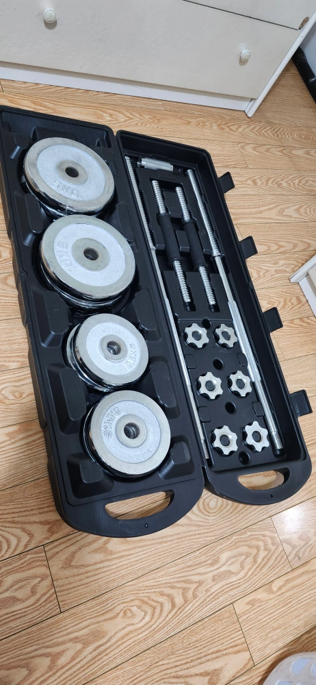 Complete dumbbell set. Includes various weight plates and connecting rods. Convenient carrying case. Great for home workouts.