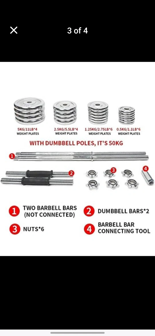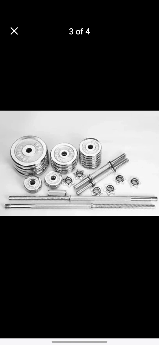 Complete dumbbell set. Includes various weight plates and connecting rods. Convenient carrying case. Great for home workouts.