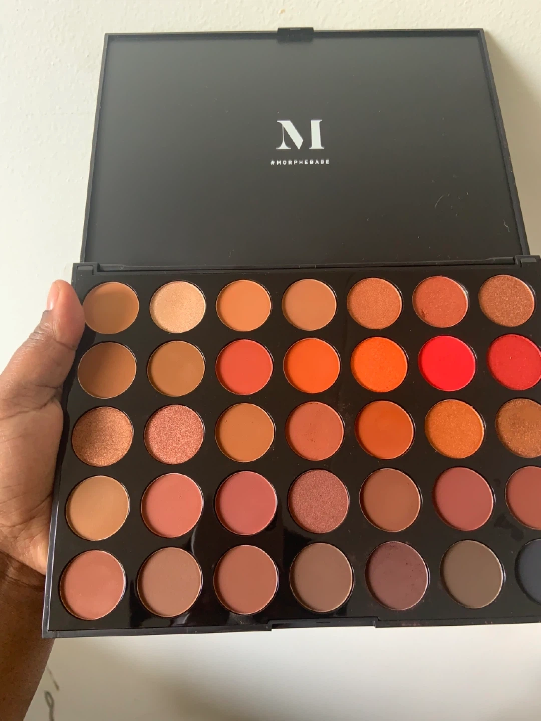 This is the Morphe 35O Eyeshadow Palette. It features 35 warm-toned shades with a mix of matte and shimmer finishes. This palette is great for creating a variety of everyday looks and more dramatic eye makeup.