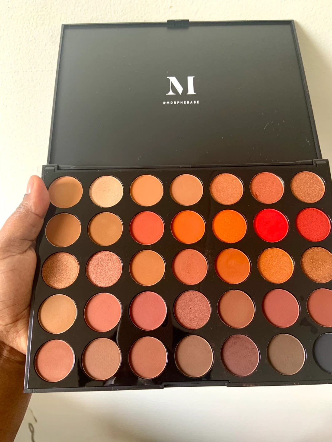 This is the Morphe 35O Eyeshadow Palette. It features 35 warm-toned shades with a mix of matte and shimmer finishes. This palette is great for creating a variety of everyday looks and more dramatic eye makeup.
