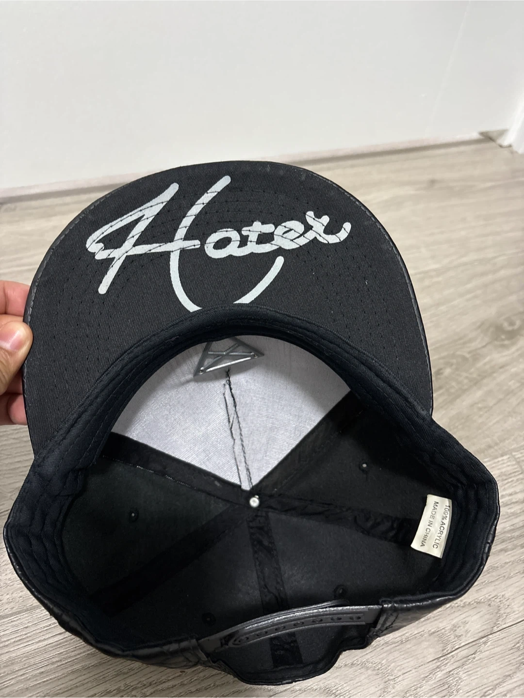 Black "Hater" Snapback Cap - Faux Leather