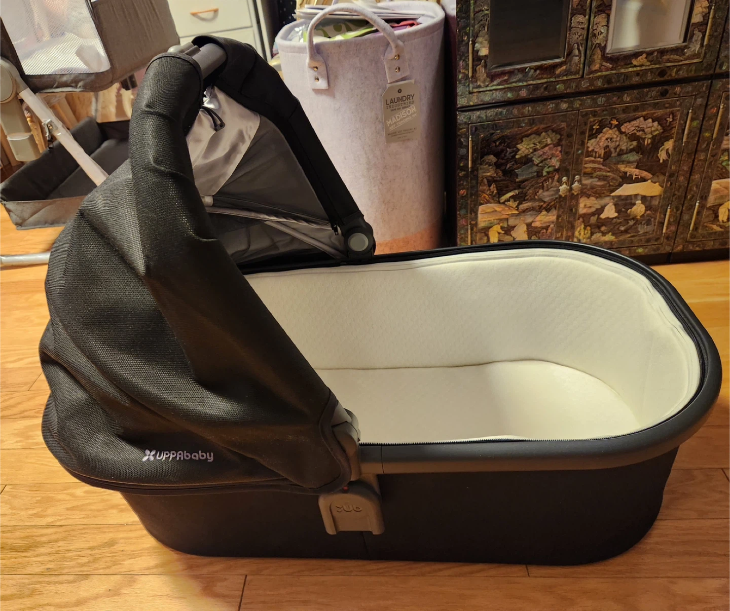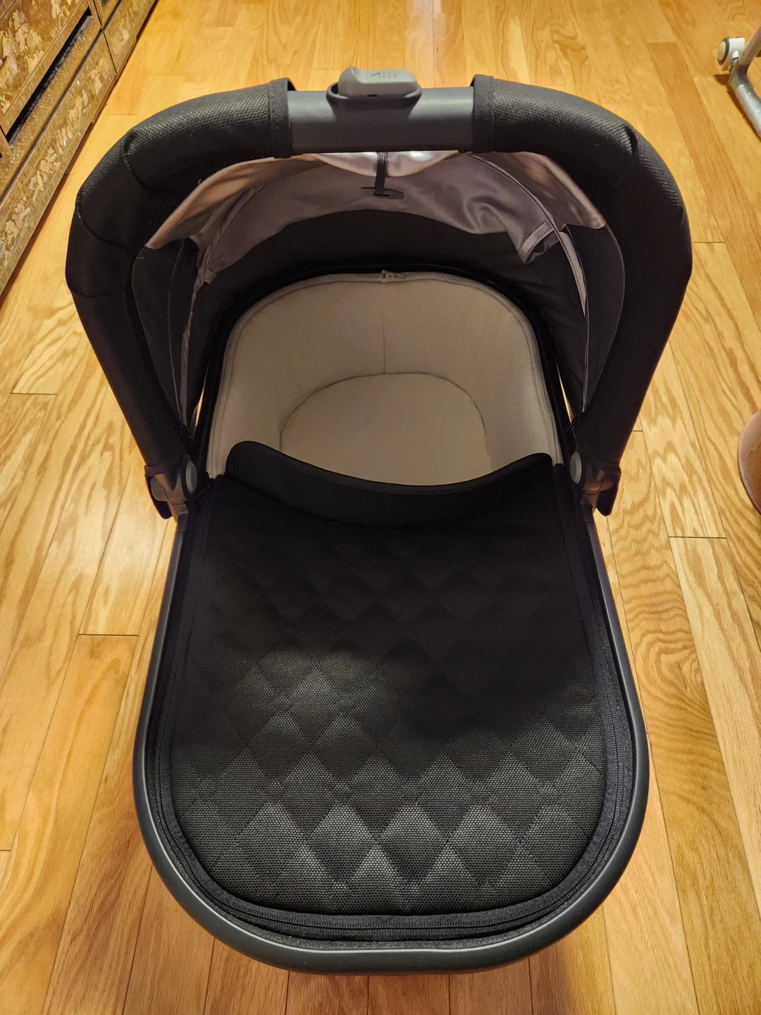 Selling a gently used UPPAbaby bassinet in black! It's in great condition and ready for a new baby. Perfect for walks or as a cozy sleeping spot at home. The bassinet is compatible with UPPAbaby strollers.