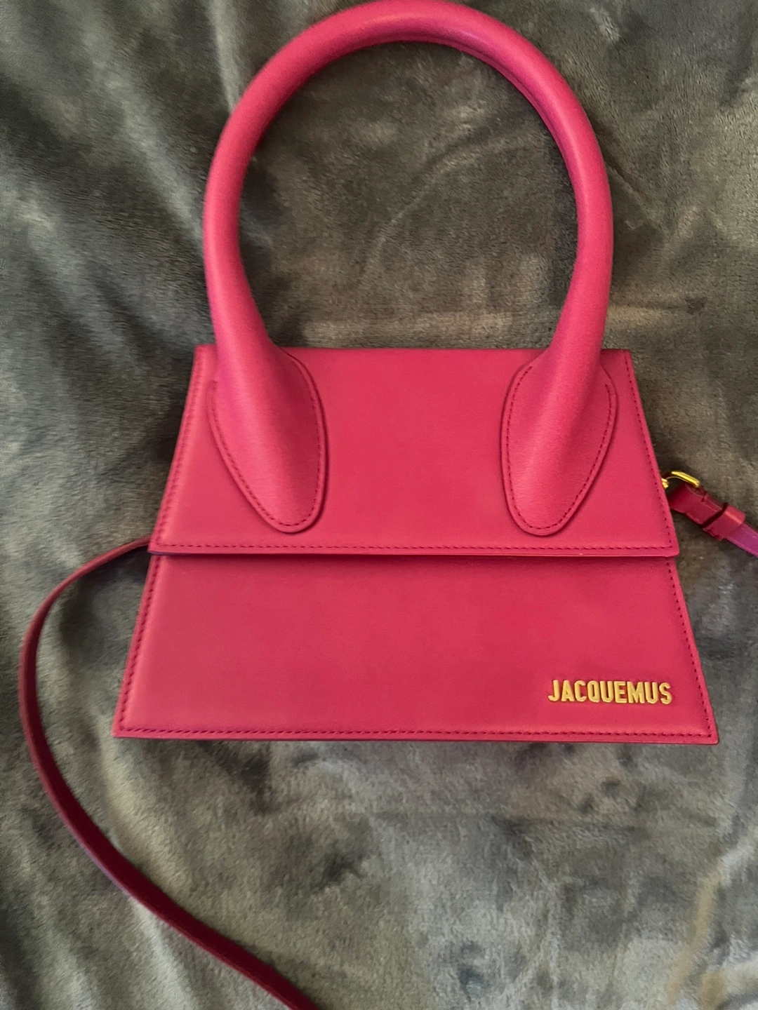 Authentic Jacquemus pink leather bag with gold hardware. Includes a detachable shoulder strap. Made in Italy. Includes a dust bag but not the original, it was lost at some point. I used the bag twice or three times.