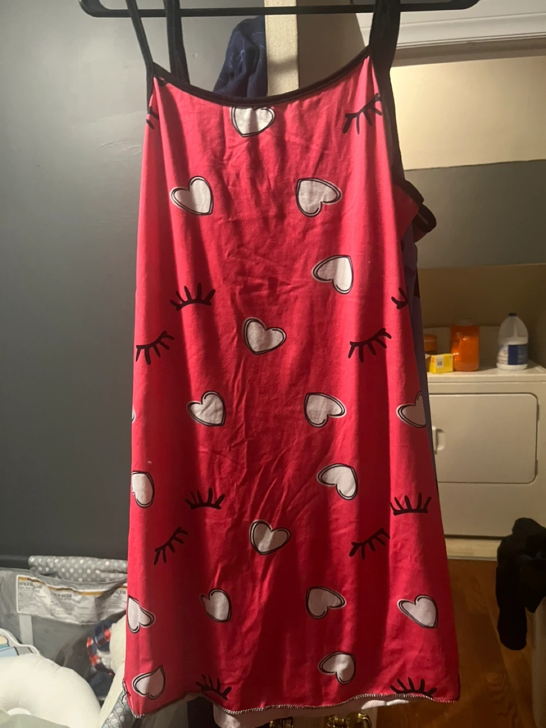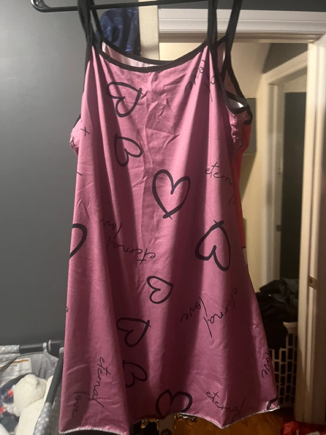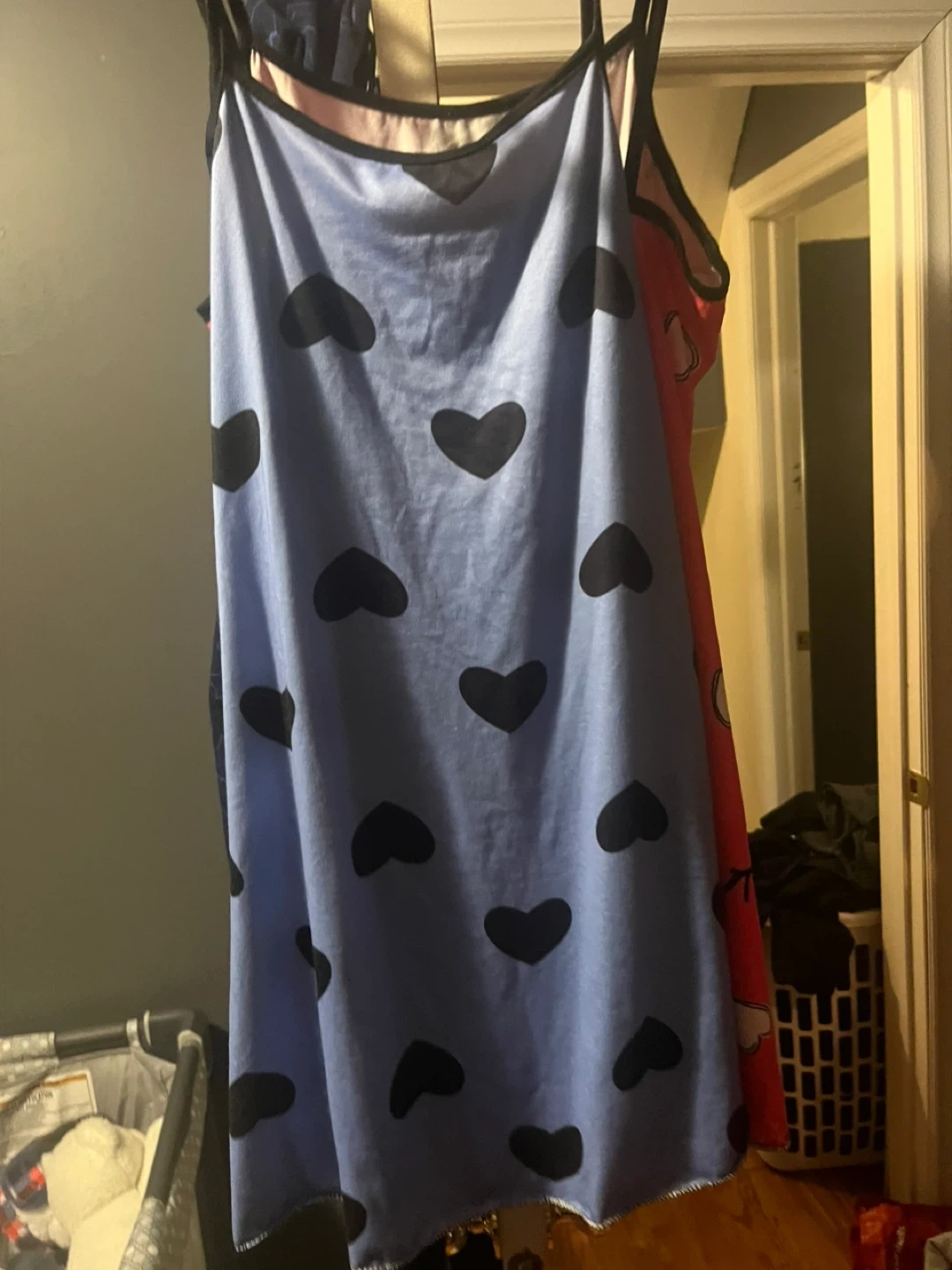 3 Sweetheart printed camisole sleep dresses. These are lightweight and comfy for sleeping. Available in multiple colours and designs. Sizes are listed as 5,fits they are wrinkled from being packed away need to put in dryer