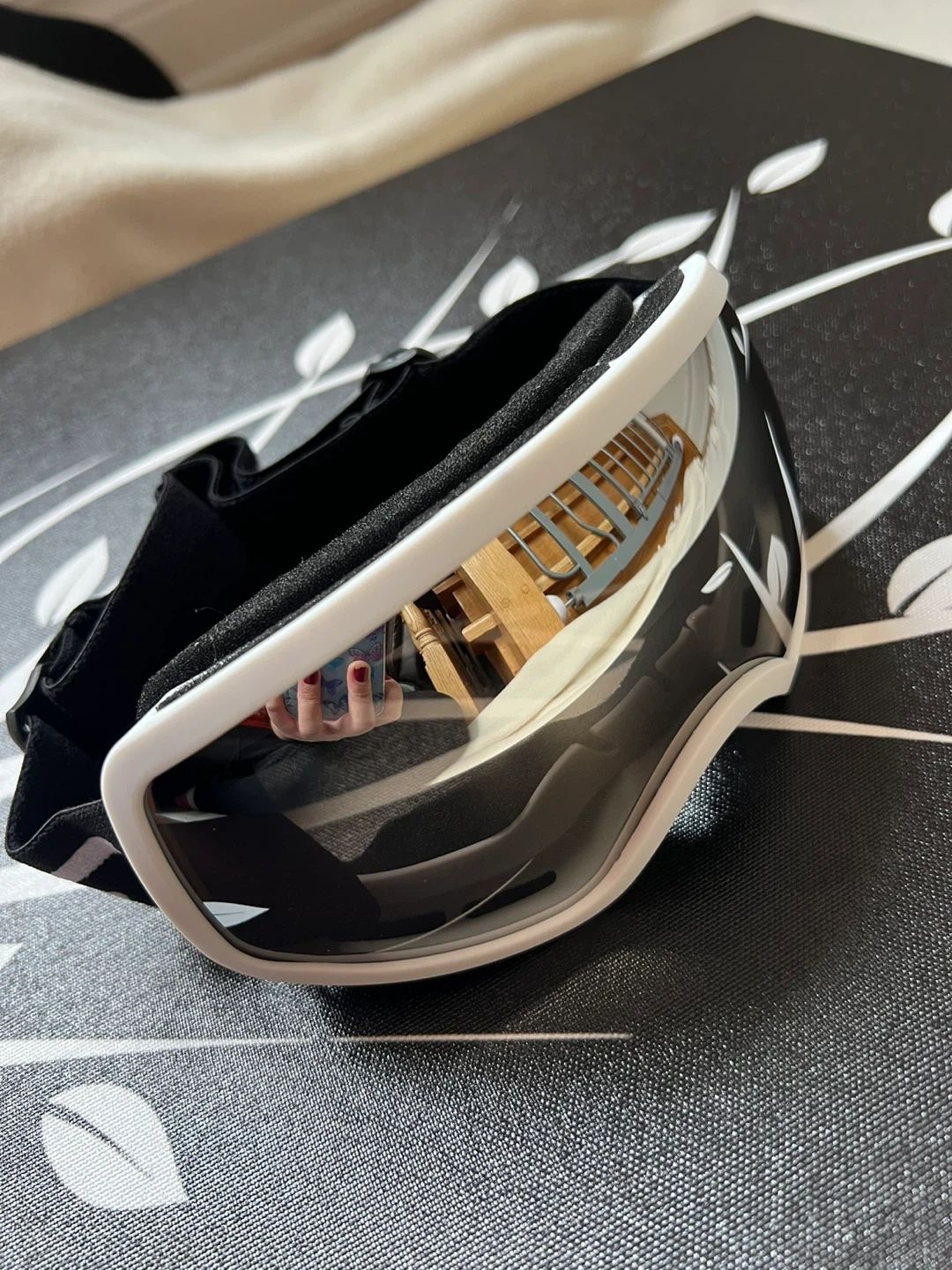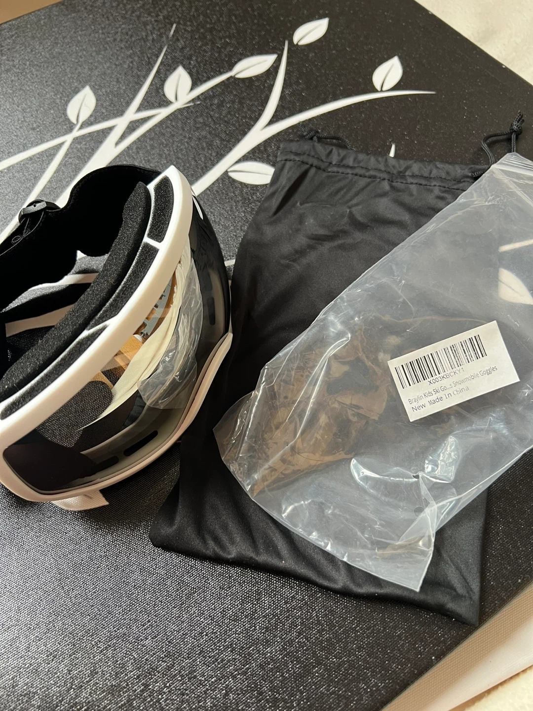 These goggles are designed for kids participating in winter sports like skiing and snowmobiling. They come with a black storage bag.
